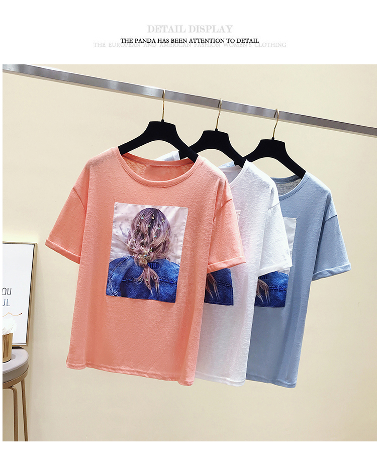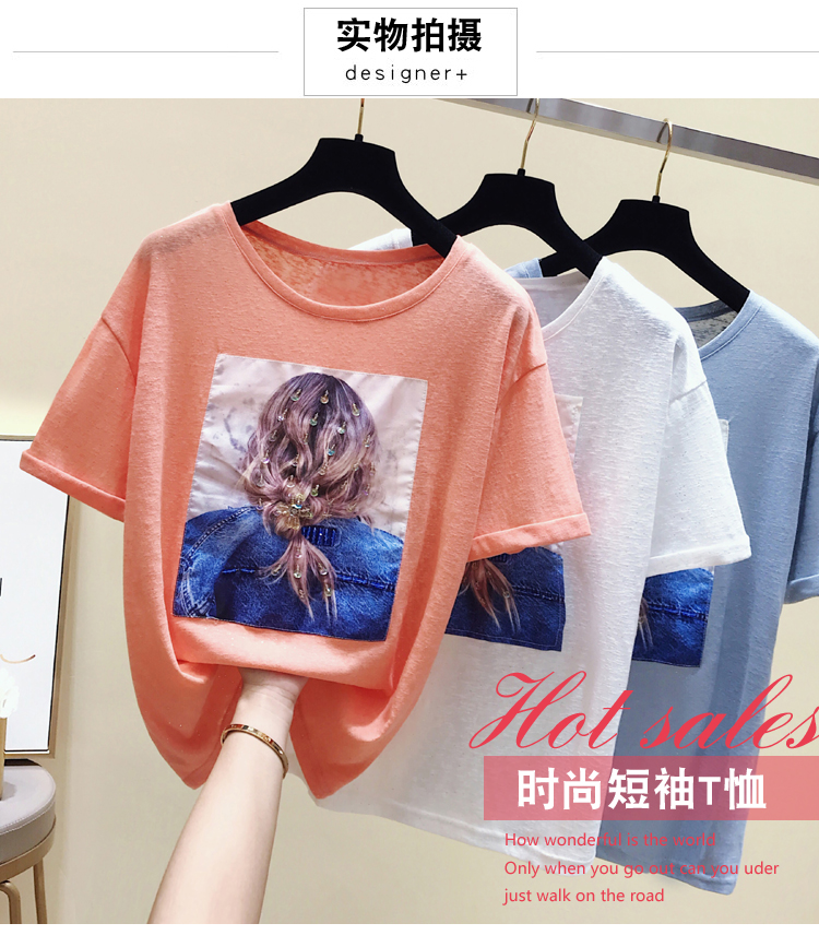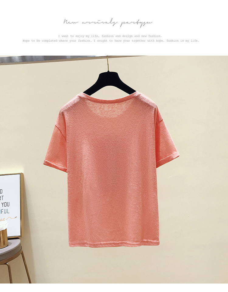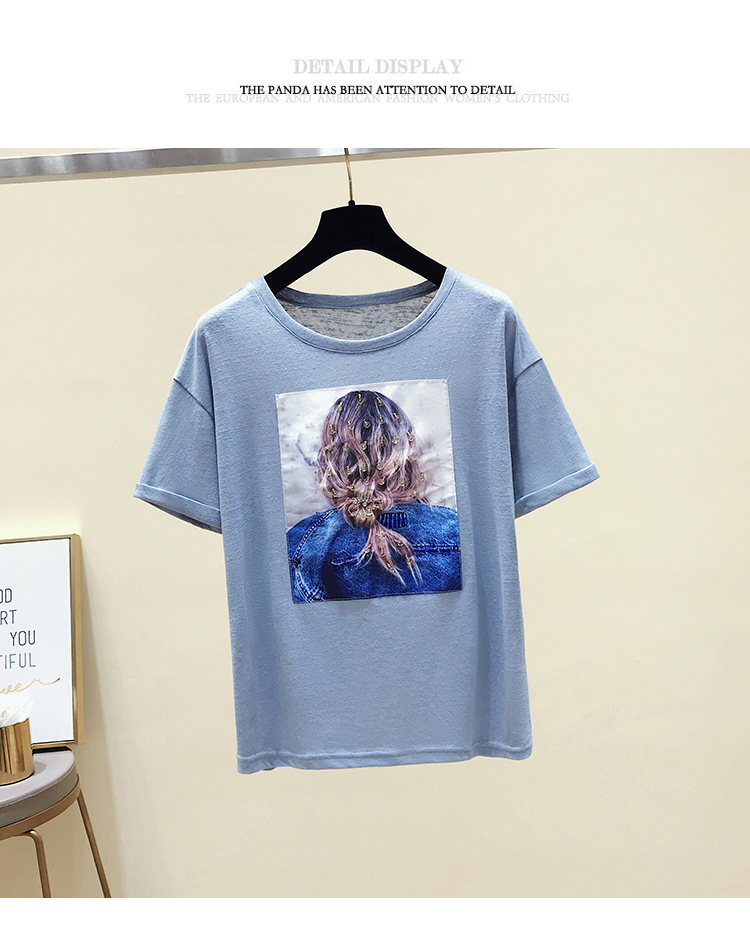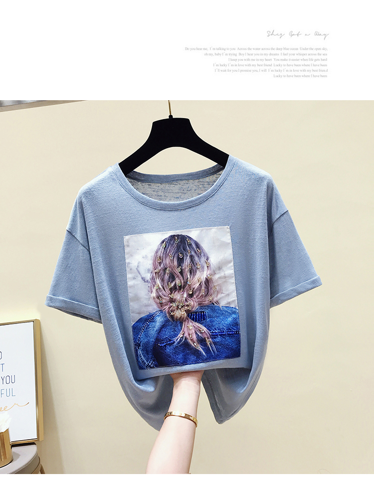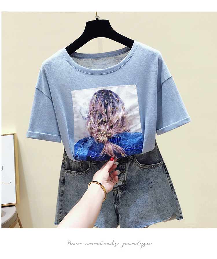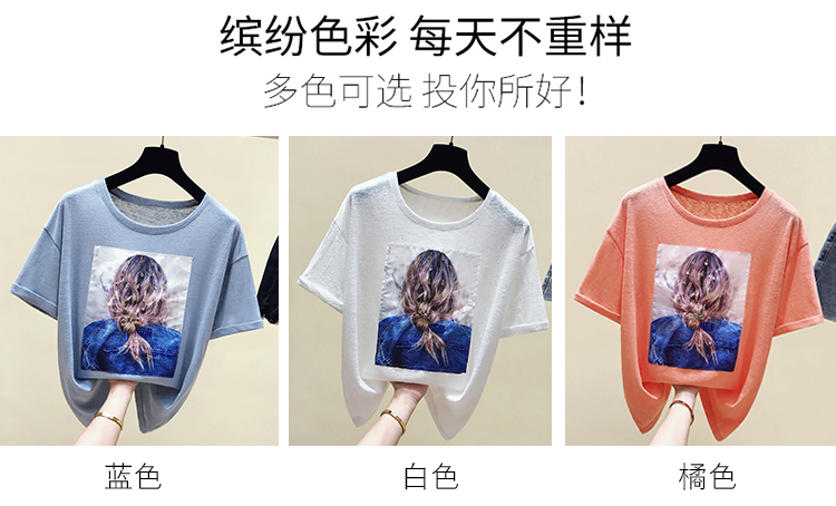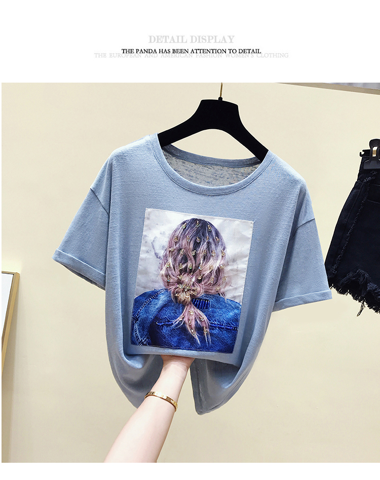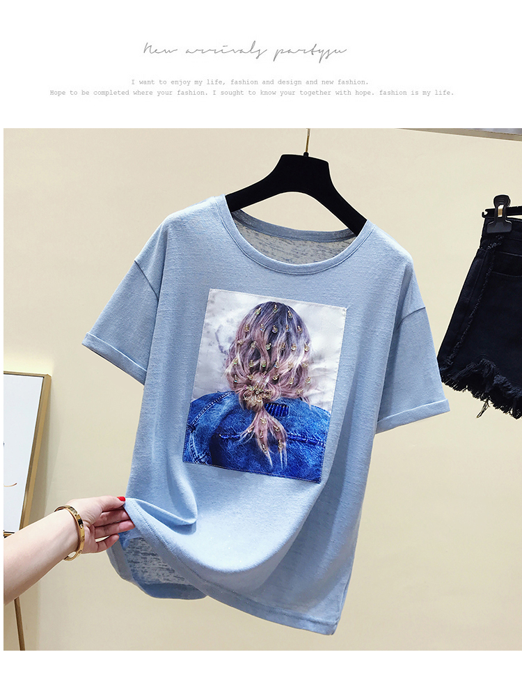 超火ins短袖女2019新款?恤夏裝藍色冰絲t恤寬松半袖亮片亮絲上衣