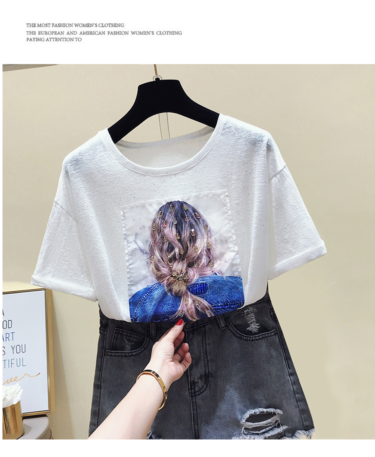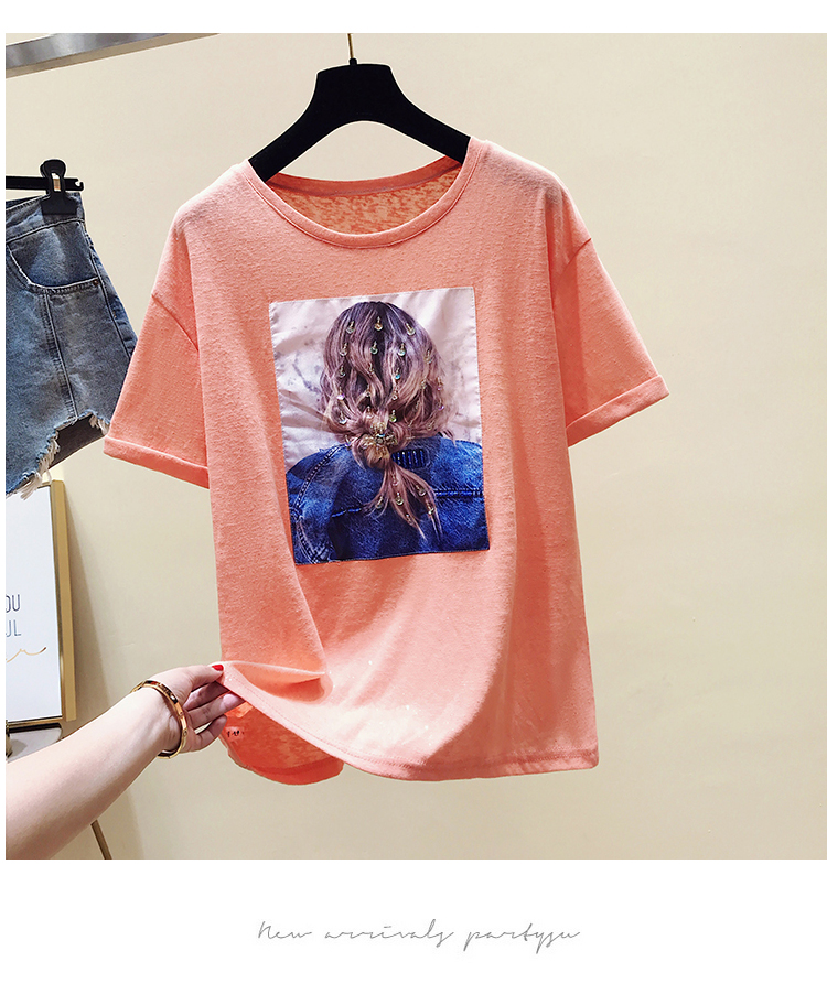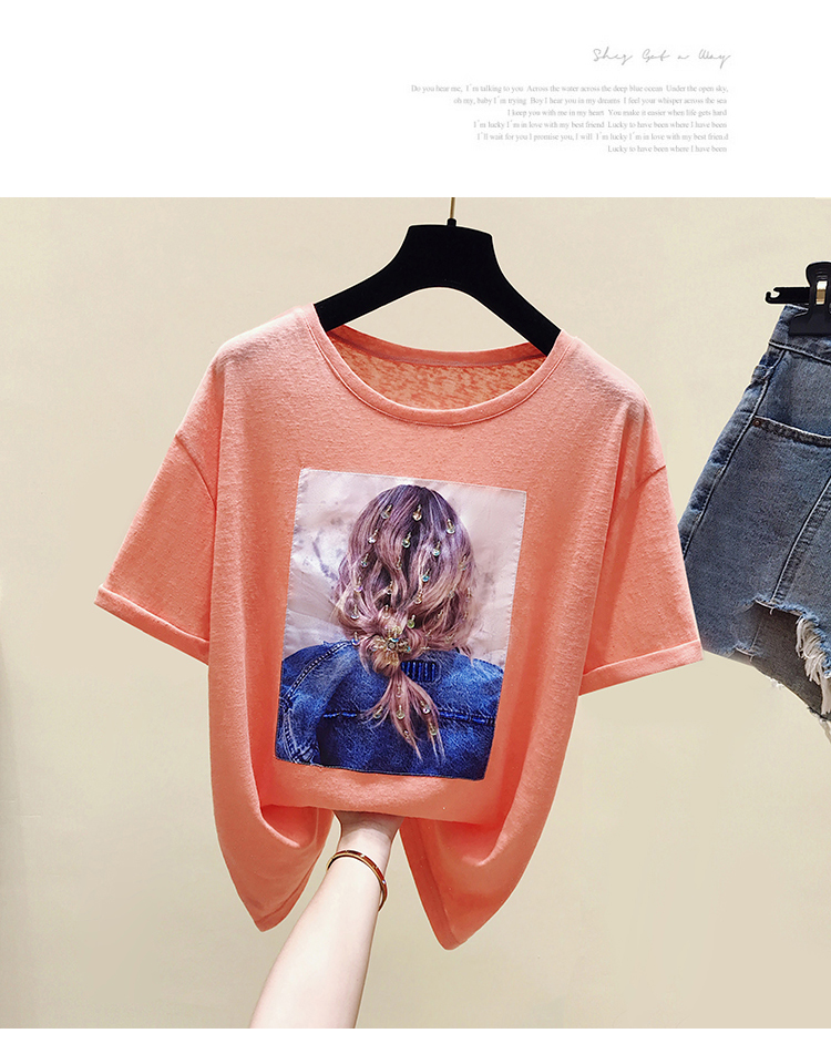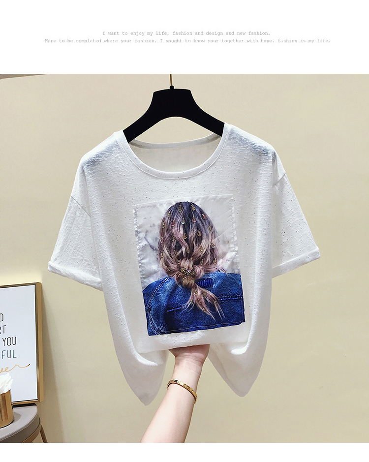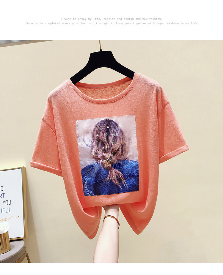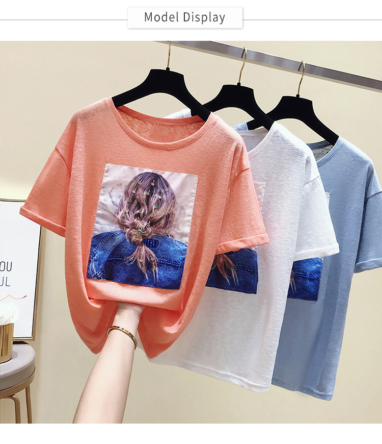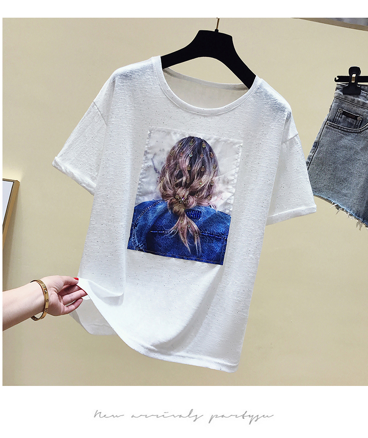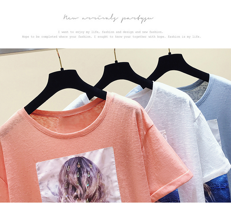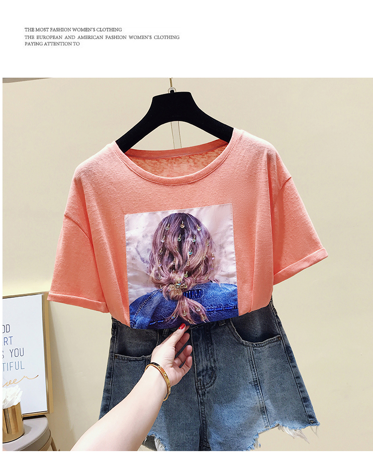 超火ins短袖女2019新款?恤夏裝藍色冰絲t恤寬松半袖亮片亮絲上衣