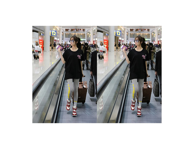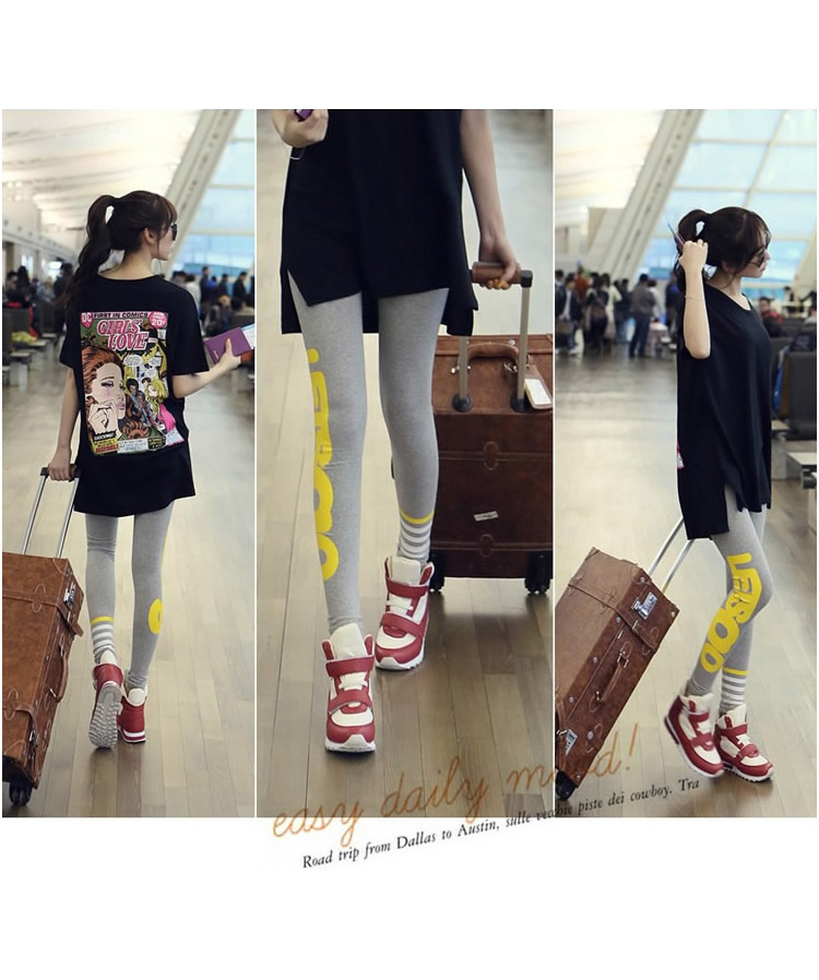 韓版夏裝寬松大碼中長款時尚休閑印花圓領短袖T恤純棉黑色上衣潮