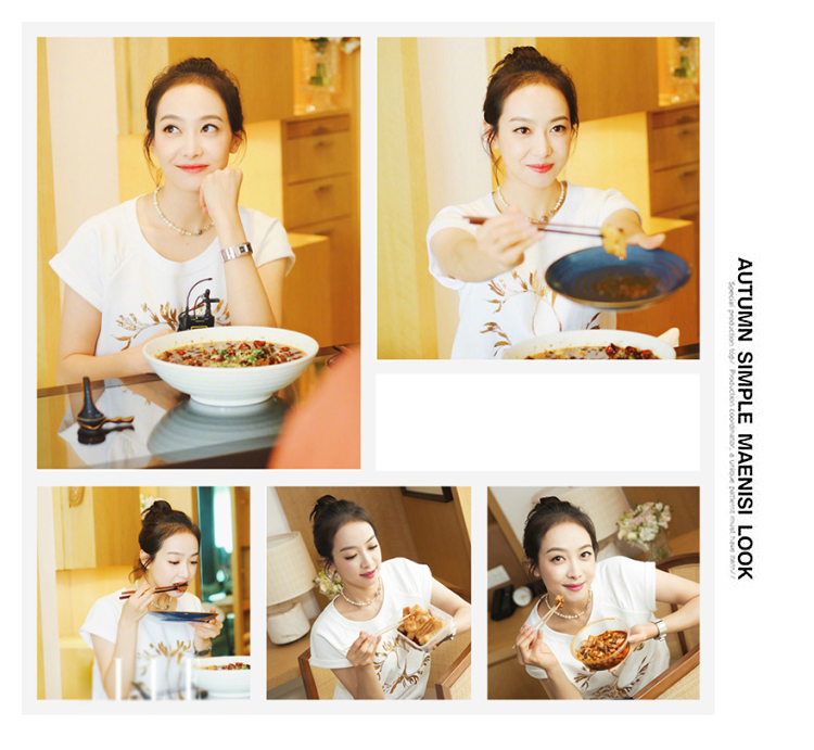 2019春夏季新款劉雯宋茜明星同款純棉圓領寬松大碼印花短袖T恤女