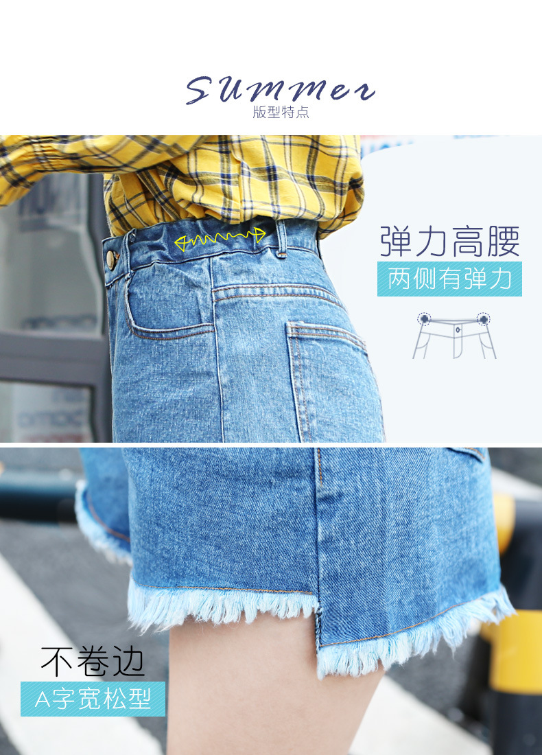 2019韓版女裝夏裝新款寬松顯瘦a字毛邊chic高腰牛仔短褲闊腿熱褲