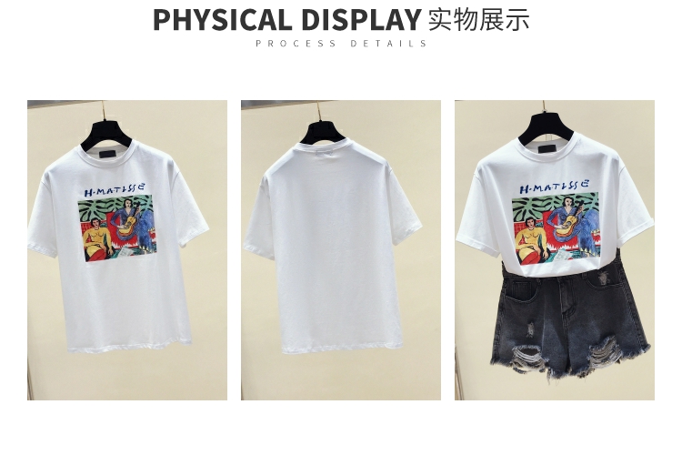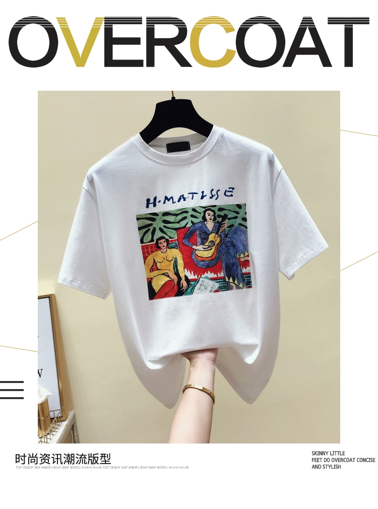 2019夏裝新款上衣韓版印花白色短袖t恤女寬松休閑百搭學生打底衫