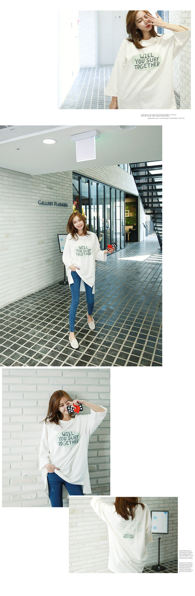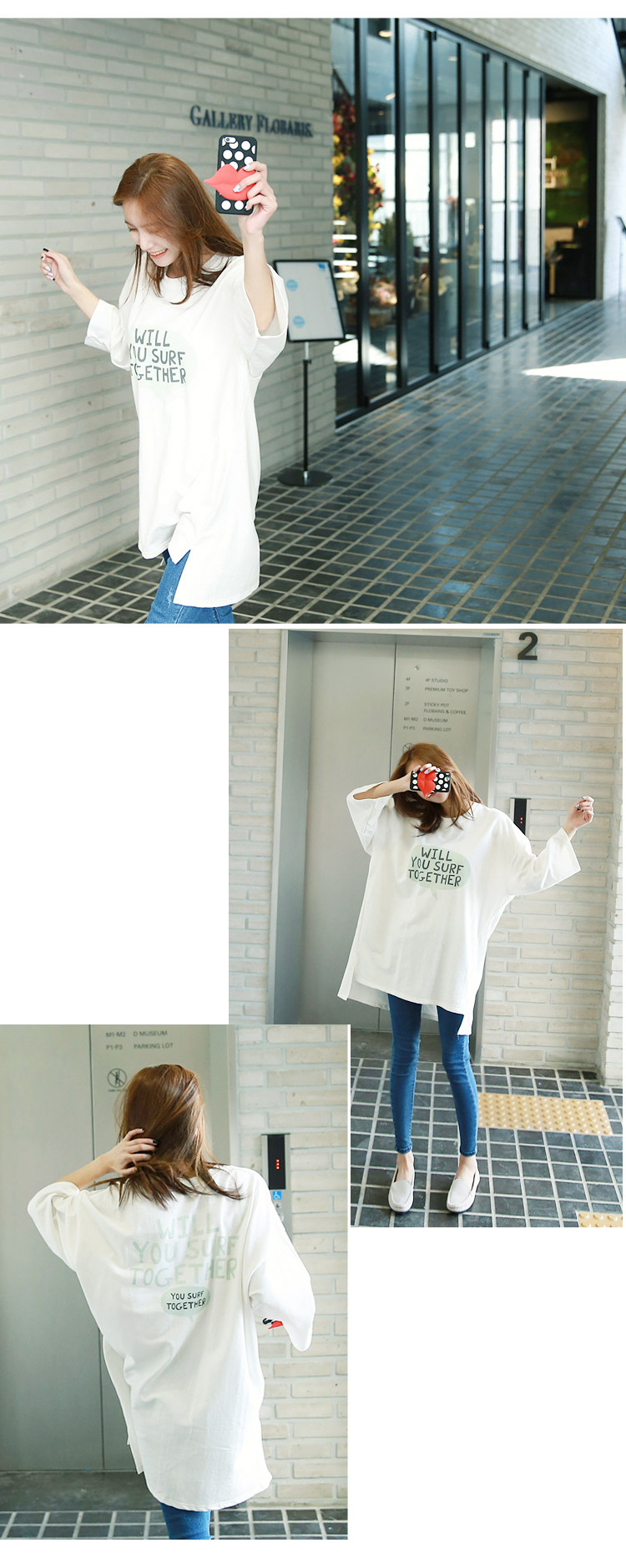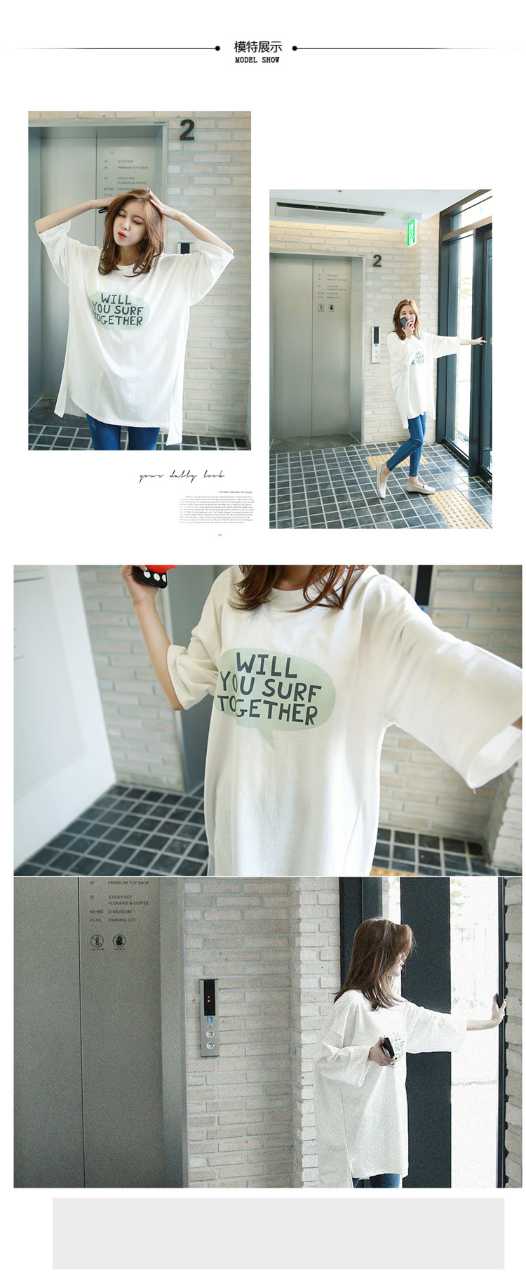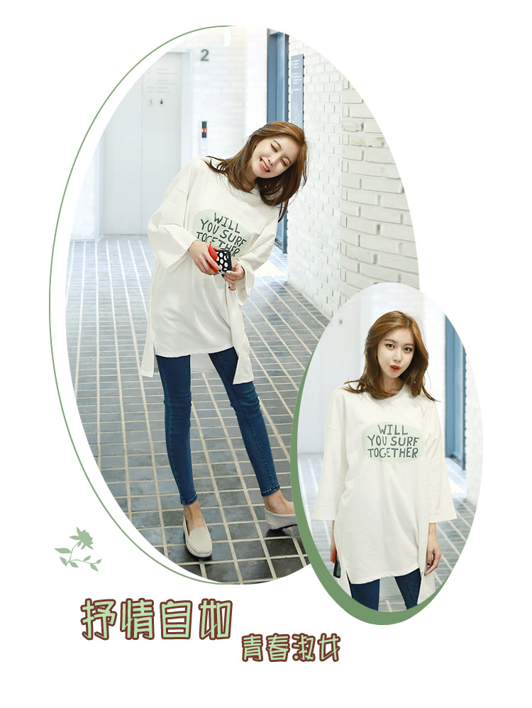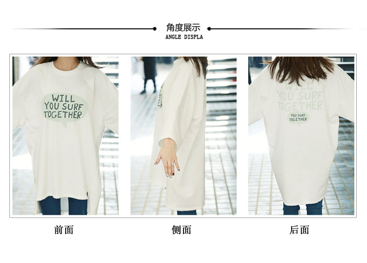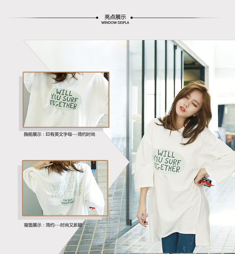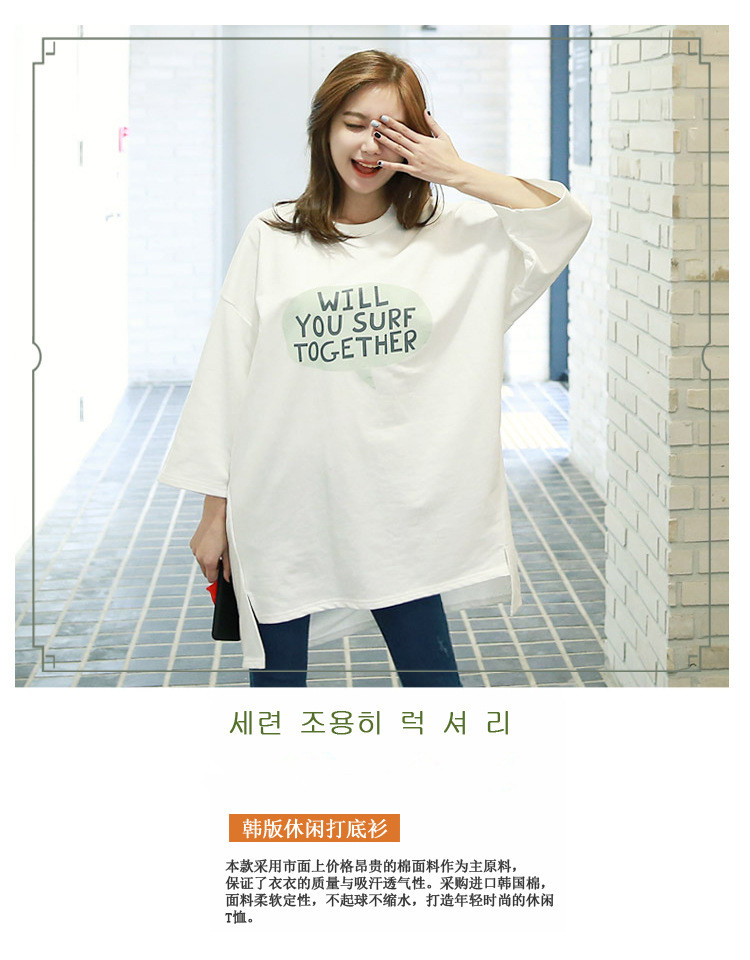 韓版春裝寬松大碼女裝白色t恤女2019新款中長款短袖五七分袖上衣
