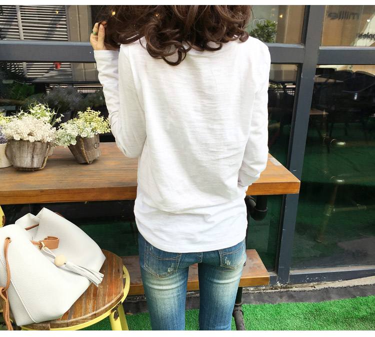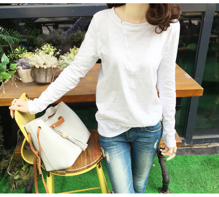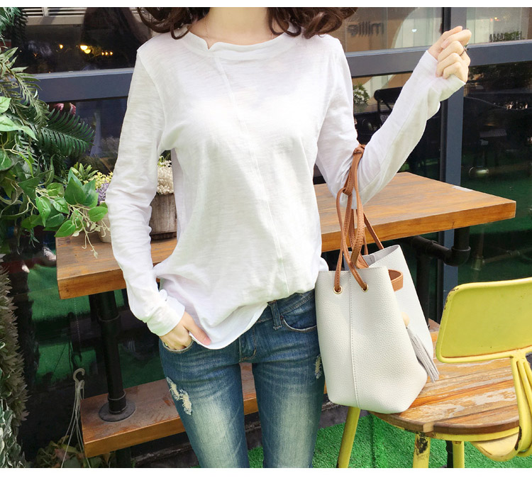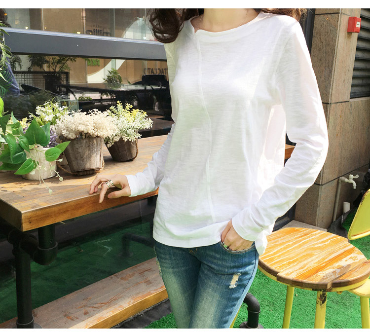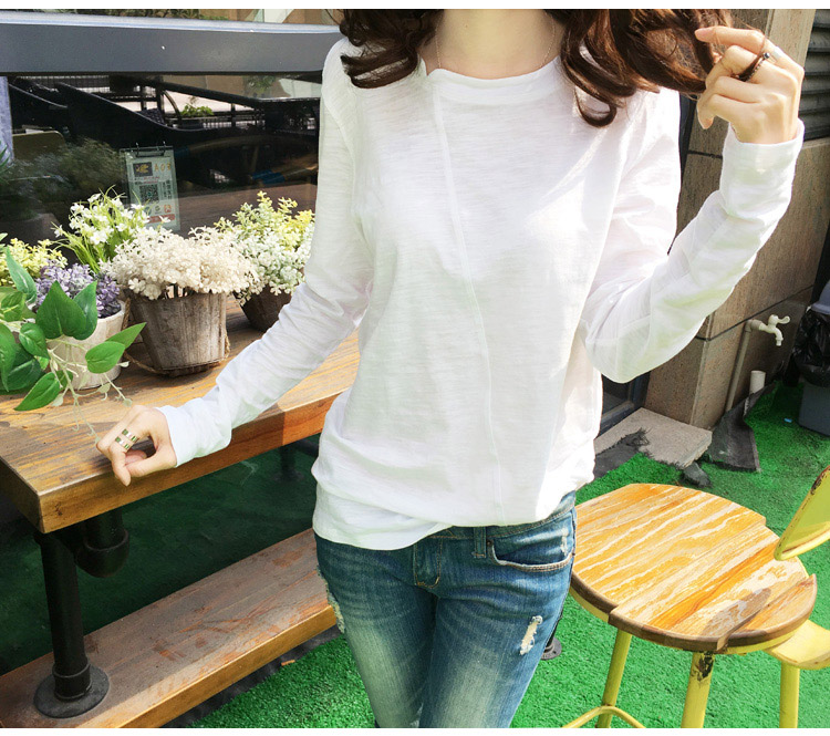 2019春秋裝新款長袖t恤女寬松韓版純棉竹節棉簡約百搭上衣打底衫