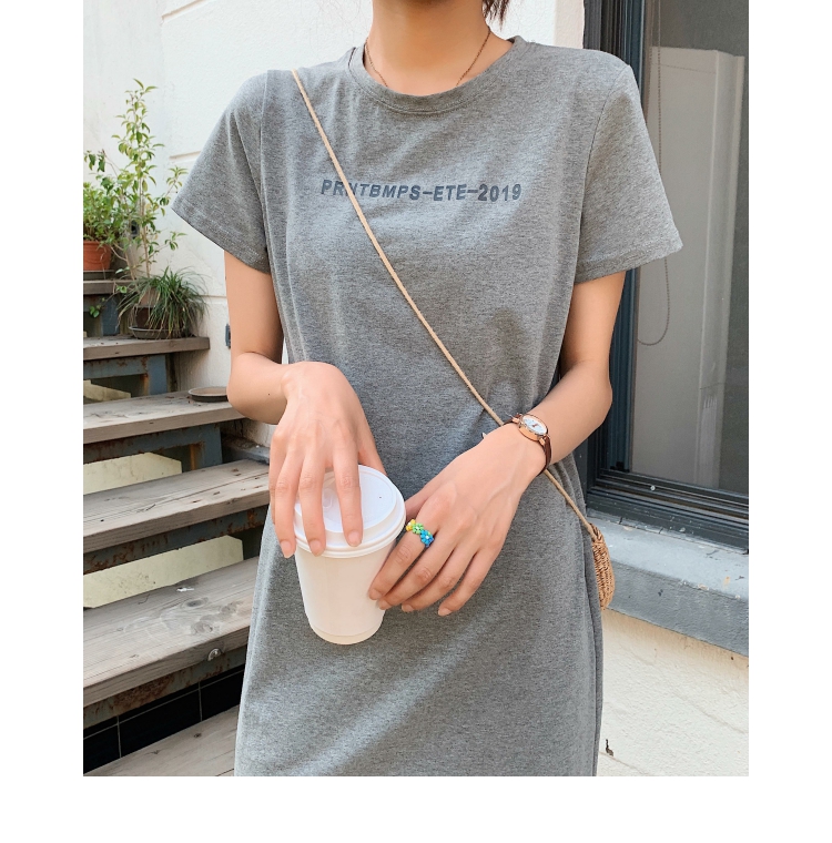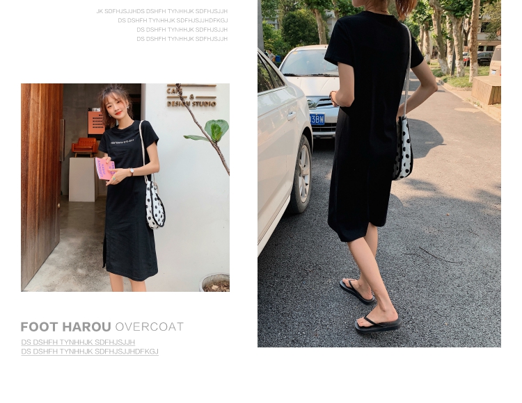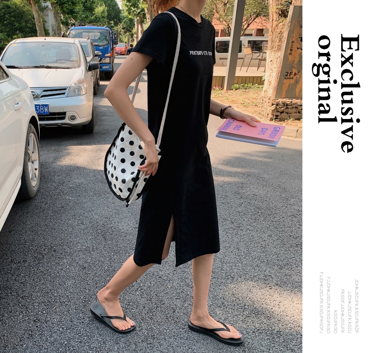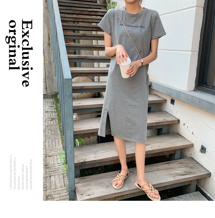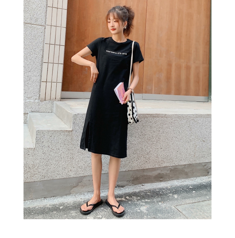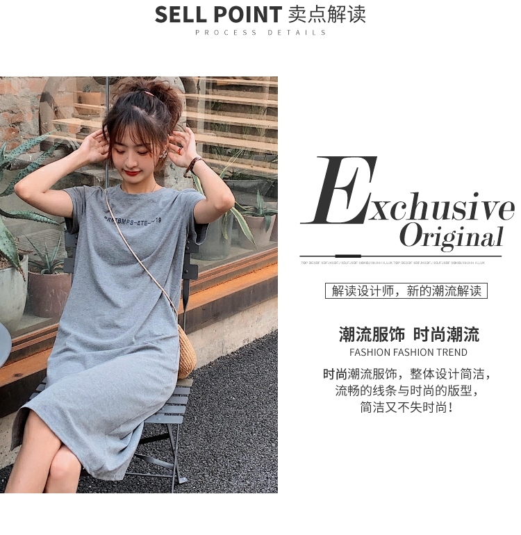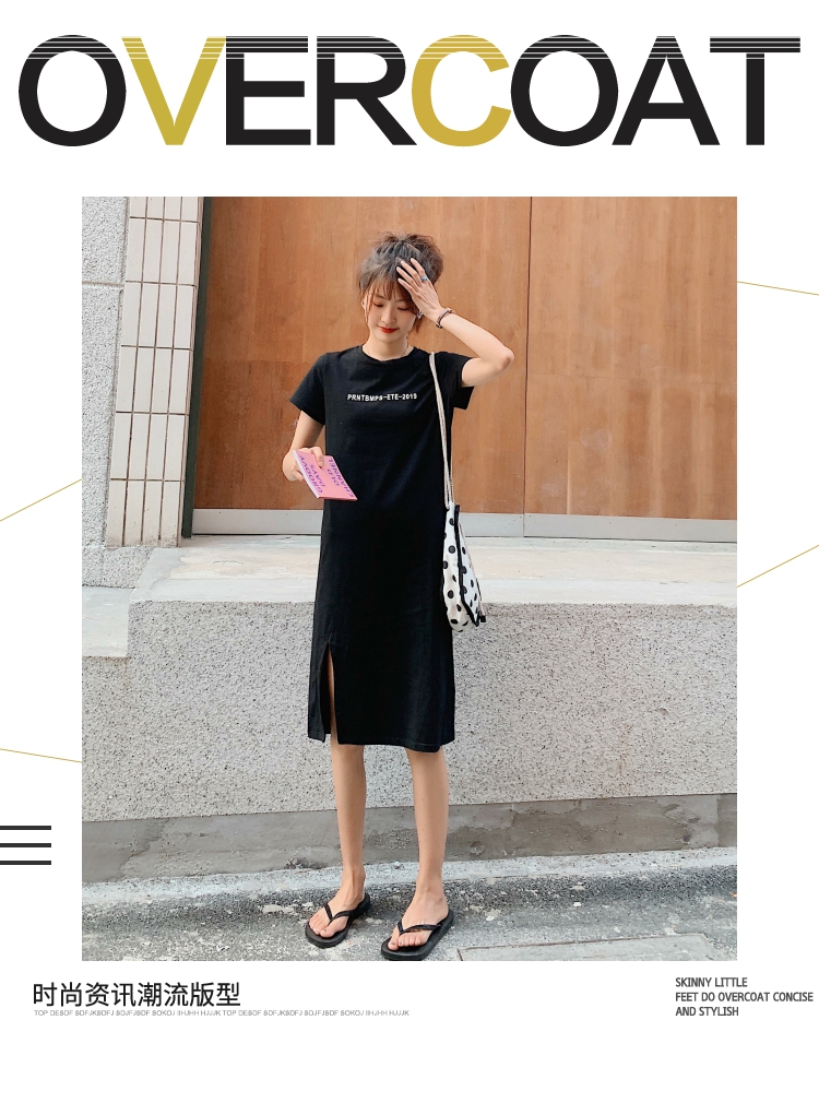 2019夏裝新款韓版中長款t恤女短袖ins潮寬松半袖過膝體恤連衣裙