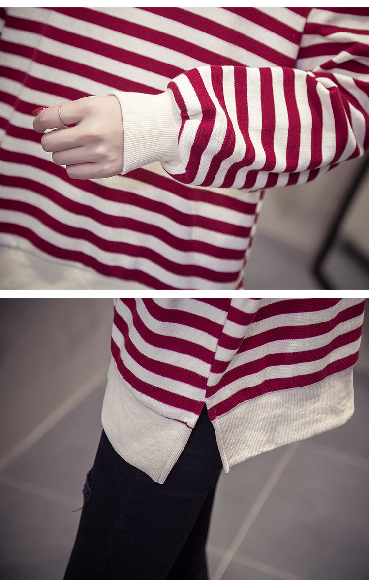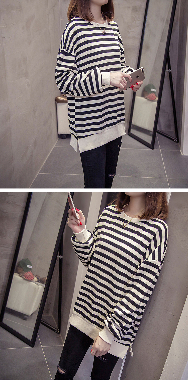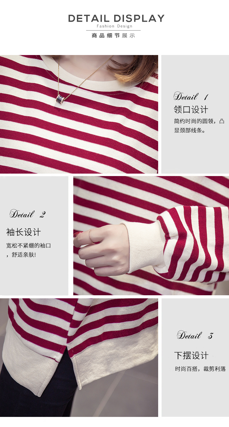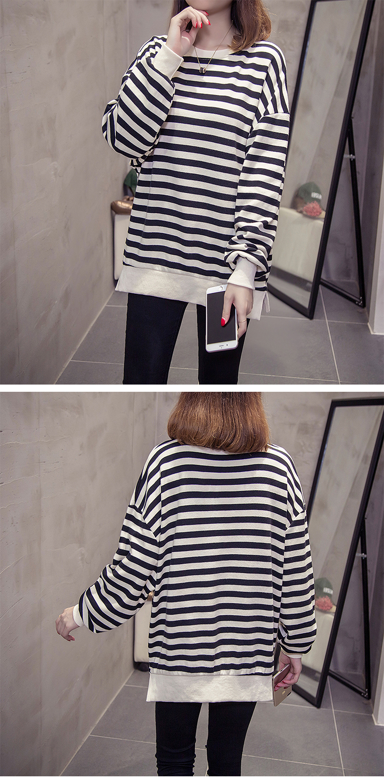 2019早春新款韓版寬松大碼條紋衛衣百搭純棉長袖針織T恤女加厚