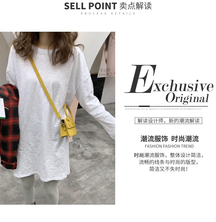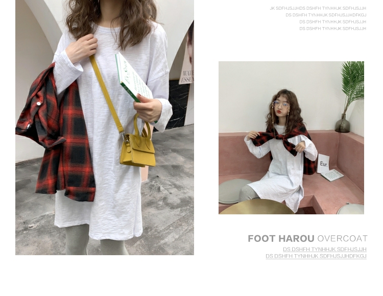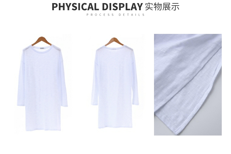 下擺開叉長袖寬松竹節棉白色t恤女2019春裝韓版中長款圓領打底衫