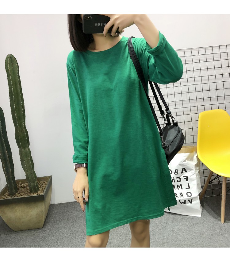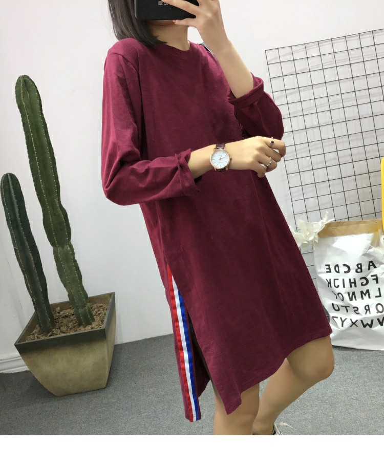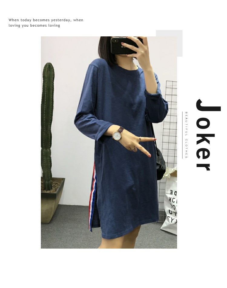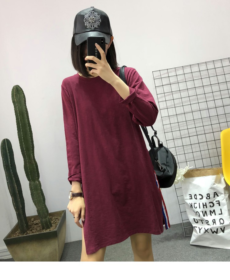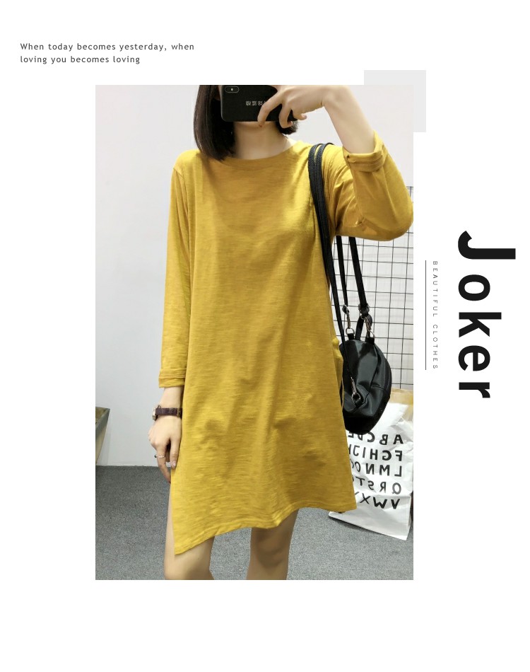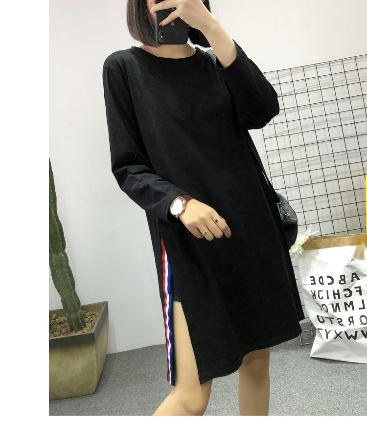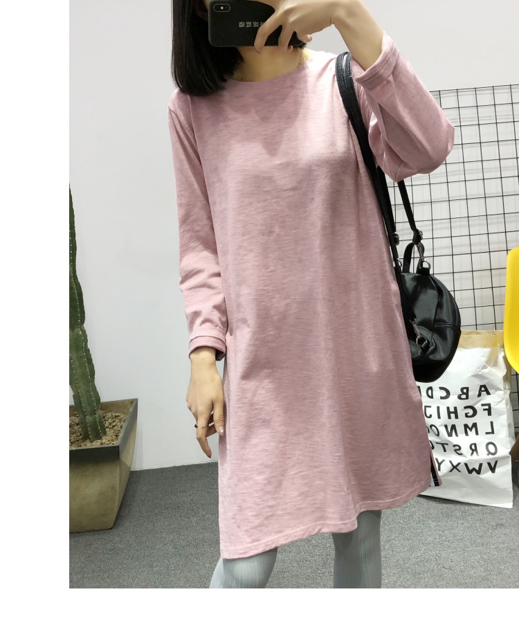 2019春秋裝新款竹節棉長袖T恤女中長款韓版寬松白色上衣開叉韓國