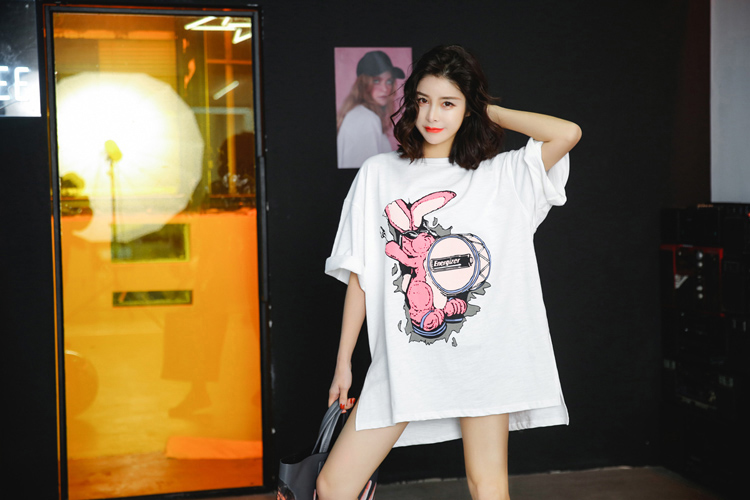 2019夏裝新款chicT恤女短袖韓版BF風大碼寬松中長款七分袖打底衫