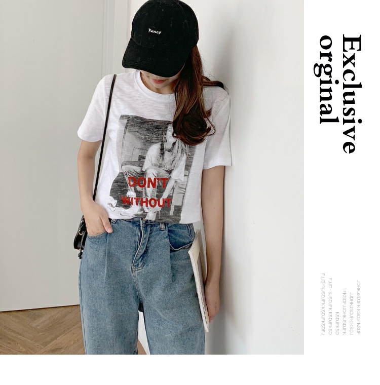 2019夏裝新款韓版寬松休閑圓領竹節棉短袖印花t恤女學生純棉上衣