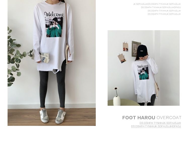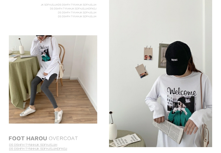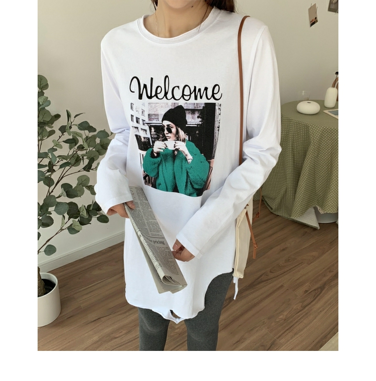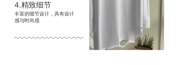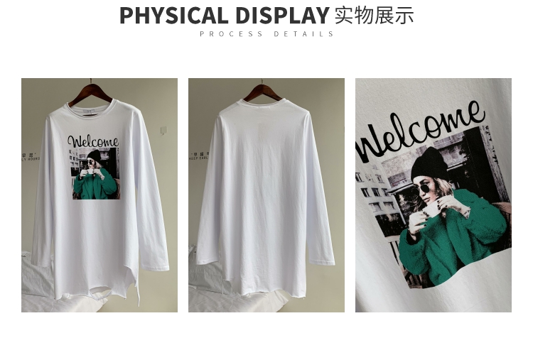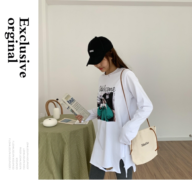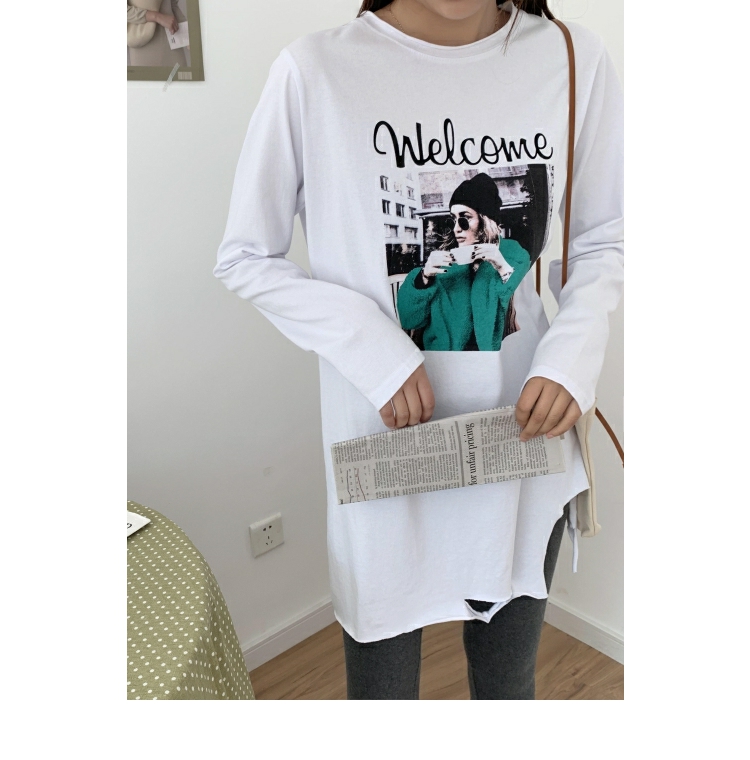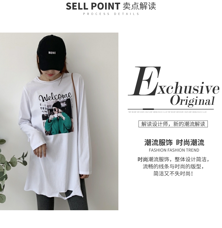 2019春季韓版純棉不規則破洞白色長袖t恤女中長款打底衫上衣體恤