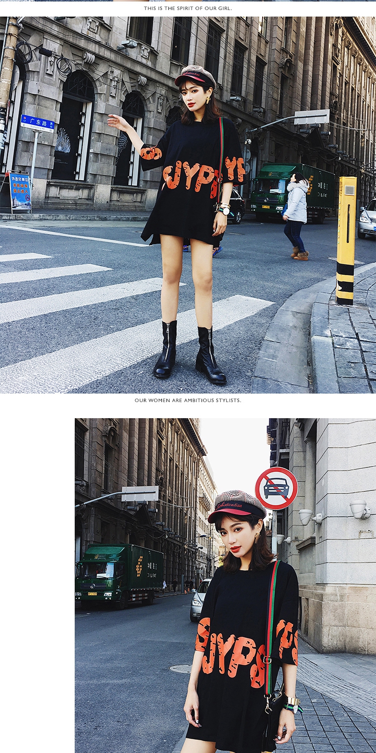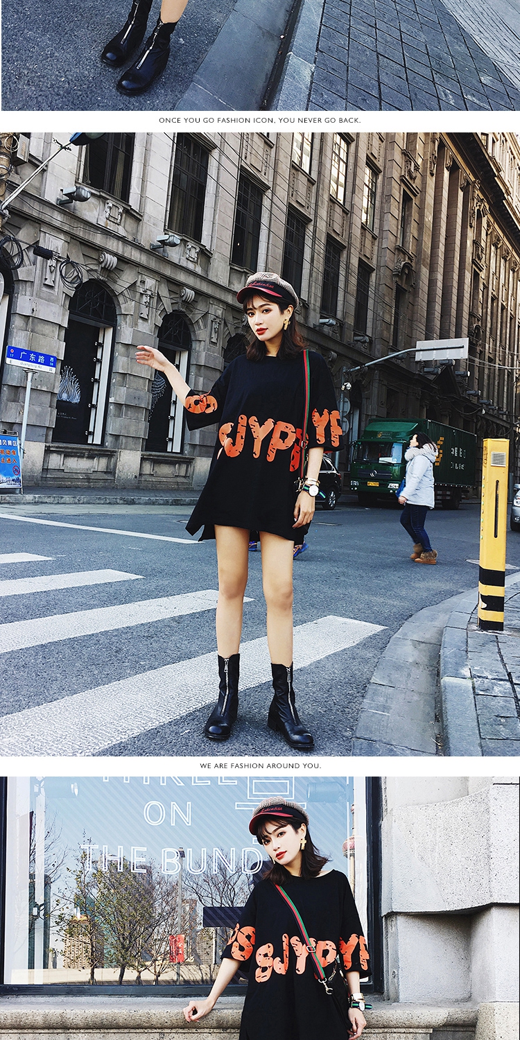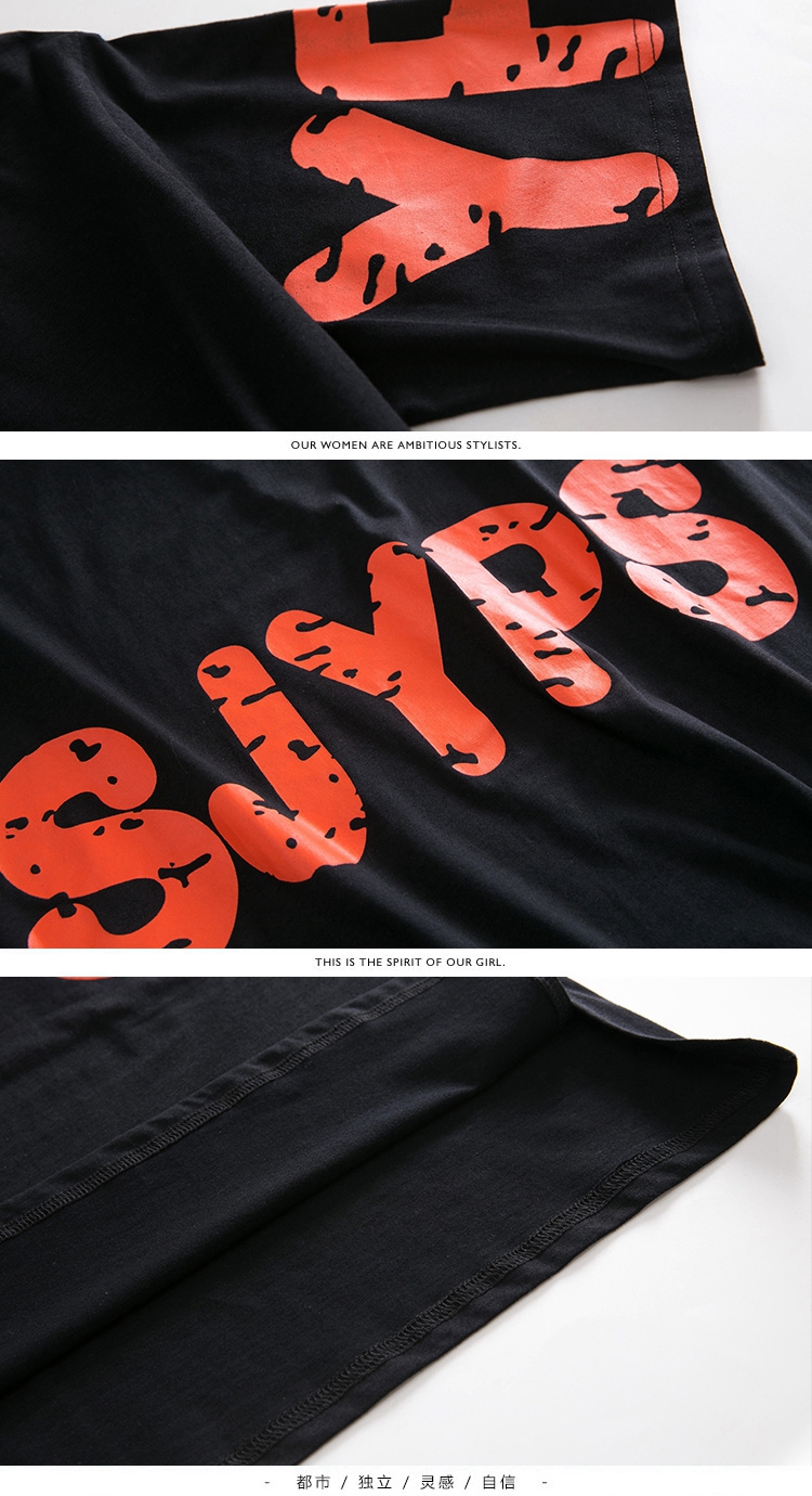 2019網紅同款t恤女上衣大碼寬松BF韓版ulzzang字母印花五分短袖潮