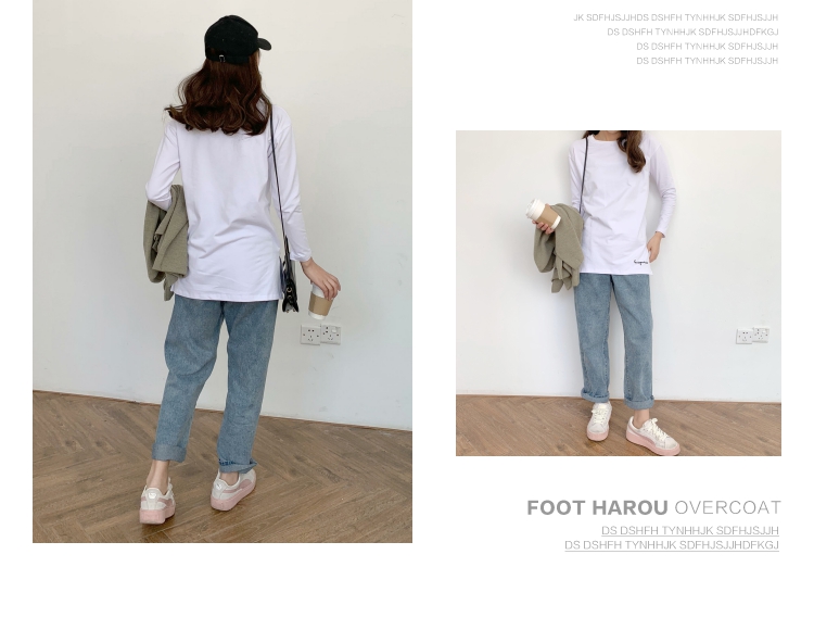 2019初春裝新款白色上衣服中長款加絨內搭長袖t恤女打底衫韓版潮