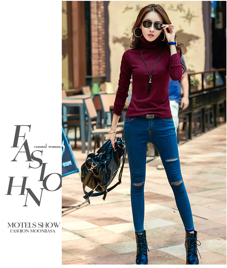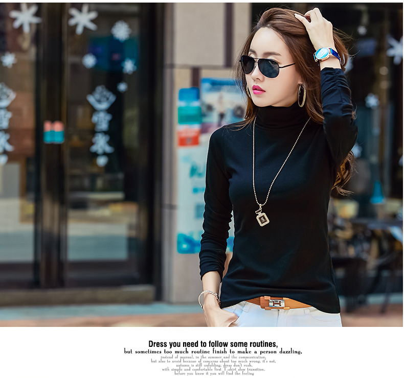高領打底衫女長袖2019春裝新款女裝修身顯瘦內搭春季t恤上衣加絨