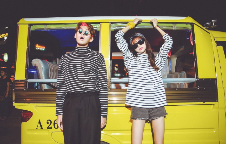 2019春裝韓版寬松大碼復古原宿風情侶條紋高領長袖T恤女打底衫