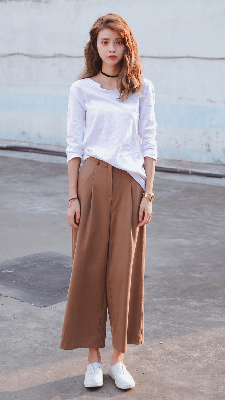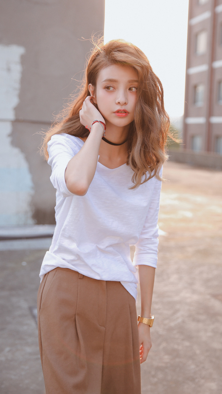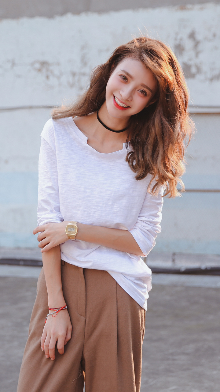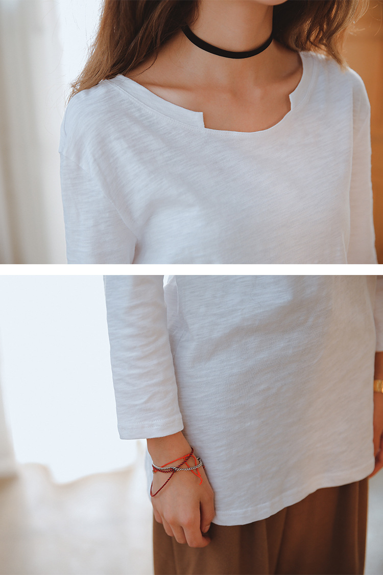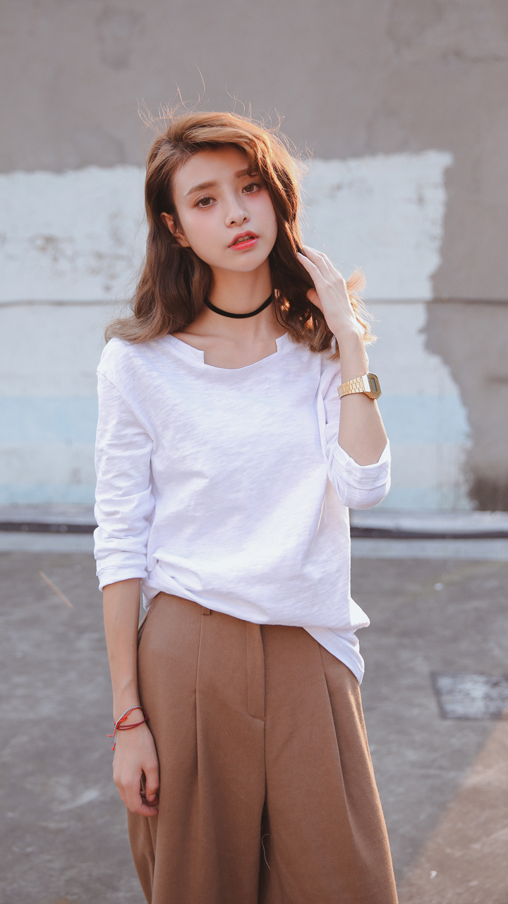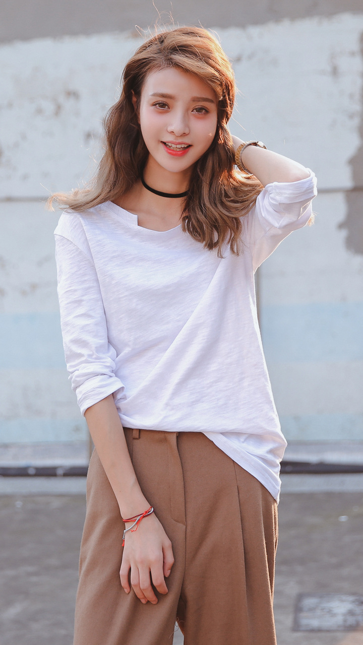 2019早春裝韓版寬松竹節棉T恤女長袖學生上衣簡約白色休閑打底衫