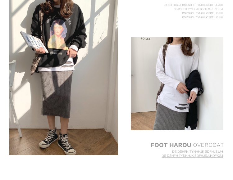 2019春裝新款下擺破洞長袖t恤女白色寬松加絨打底衫中長款上衣潮