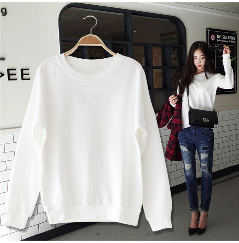 2019春秋裝新款上衣服韓版大碼寬松白色長袖t恤打底衫女短款衛衣