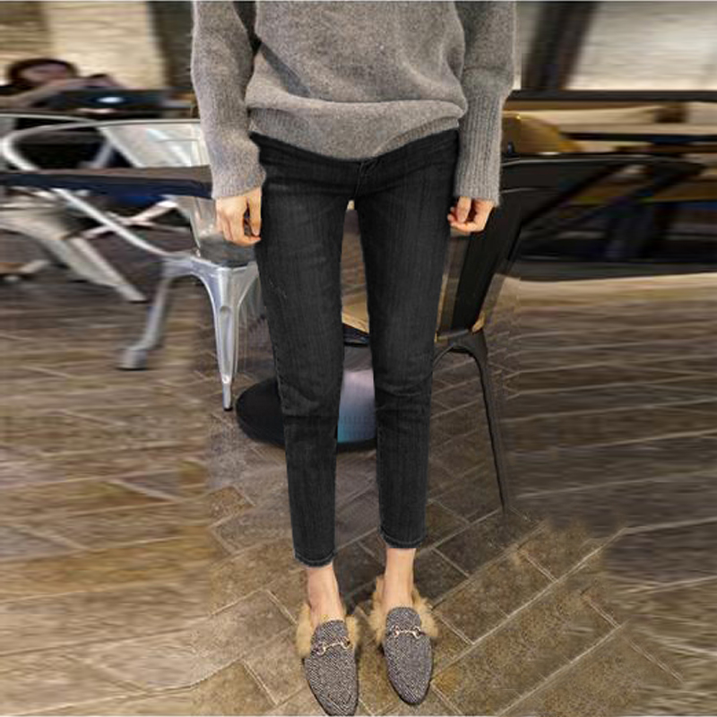 高腰九分牛仔褲女加絨春季緊身韓版顯瘦小腳褲子2019新款春秋長褲
