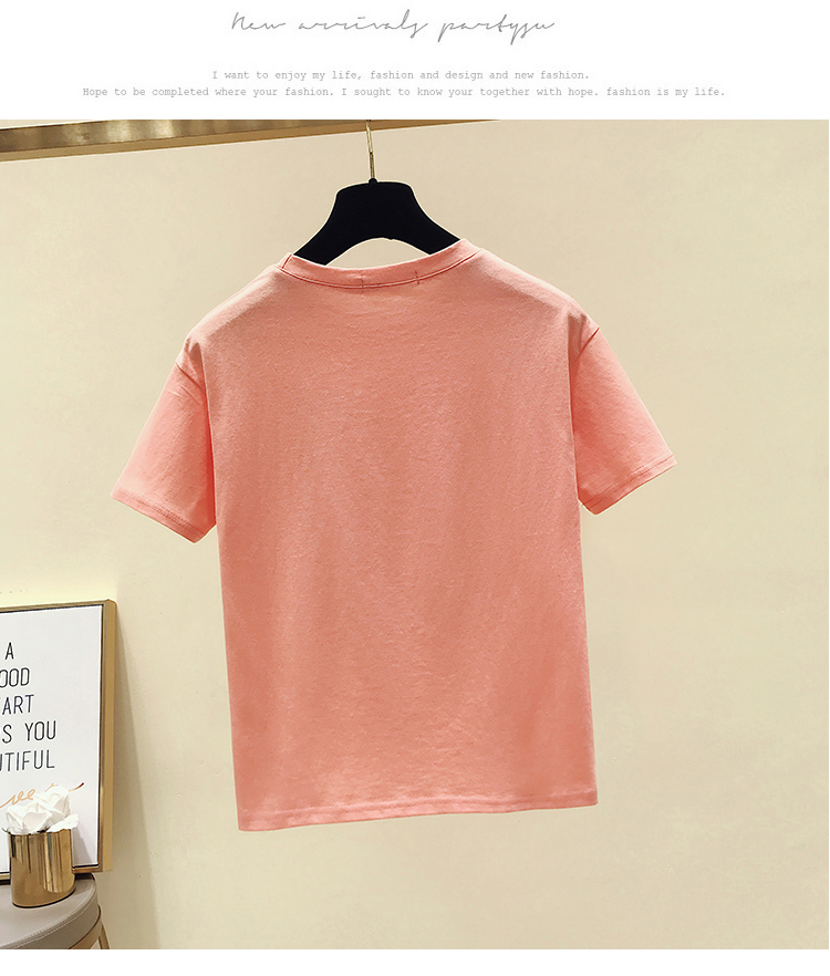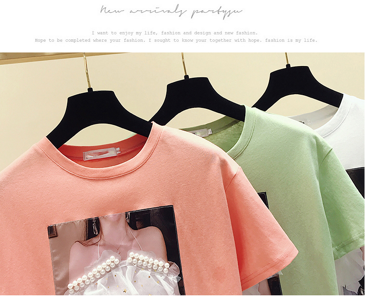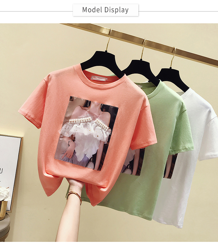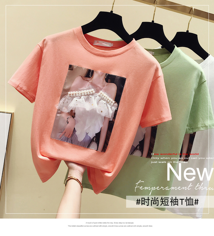 韓國新款純棉寬松短袖女夏裝重工釘珠上衣抹茶綠T恤牛油果綠半袖