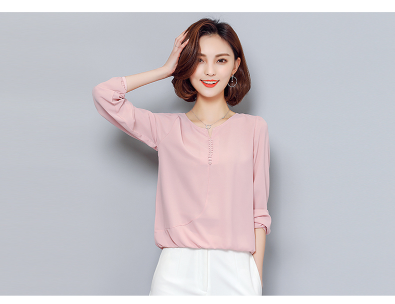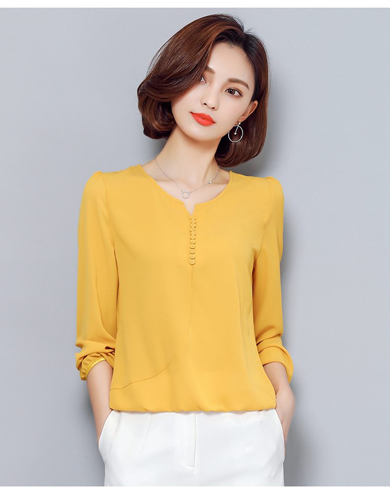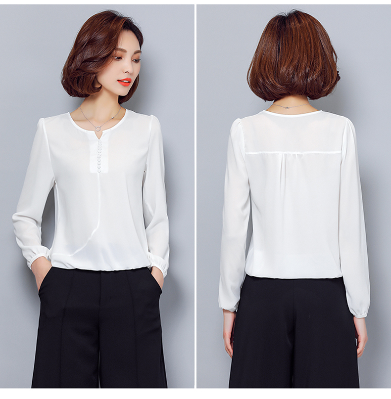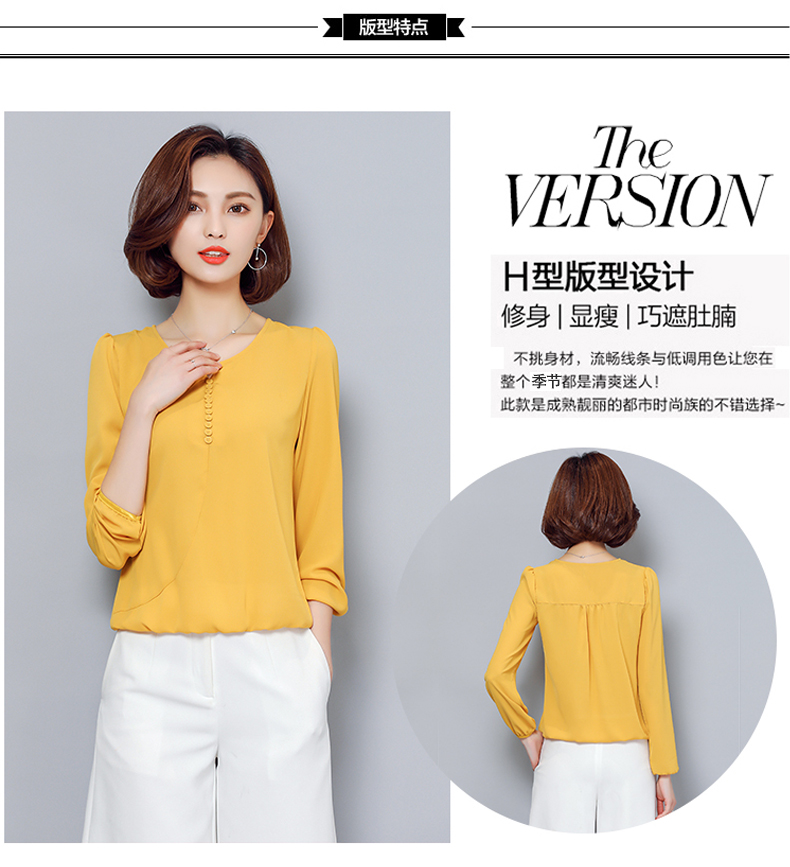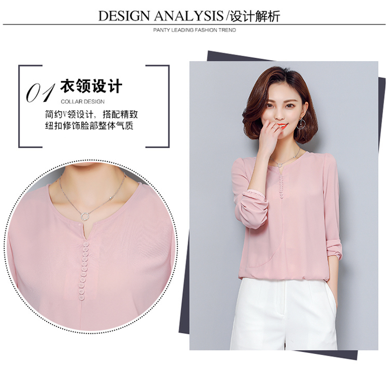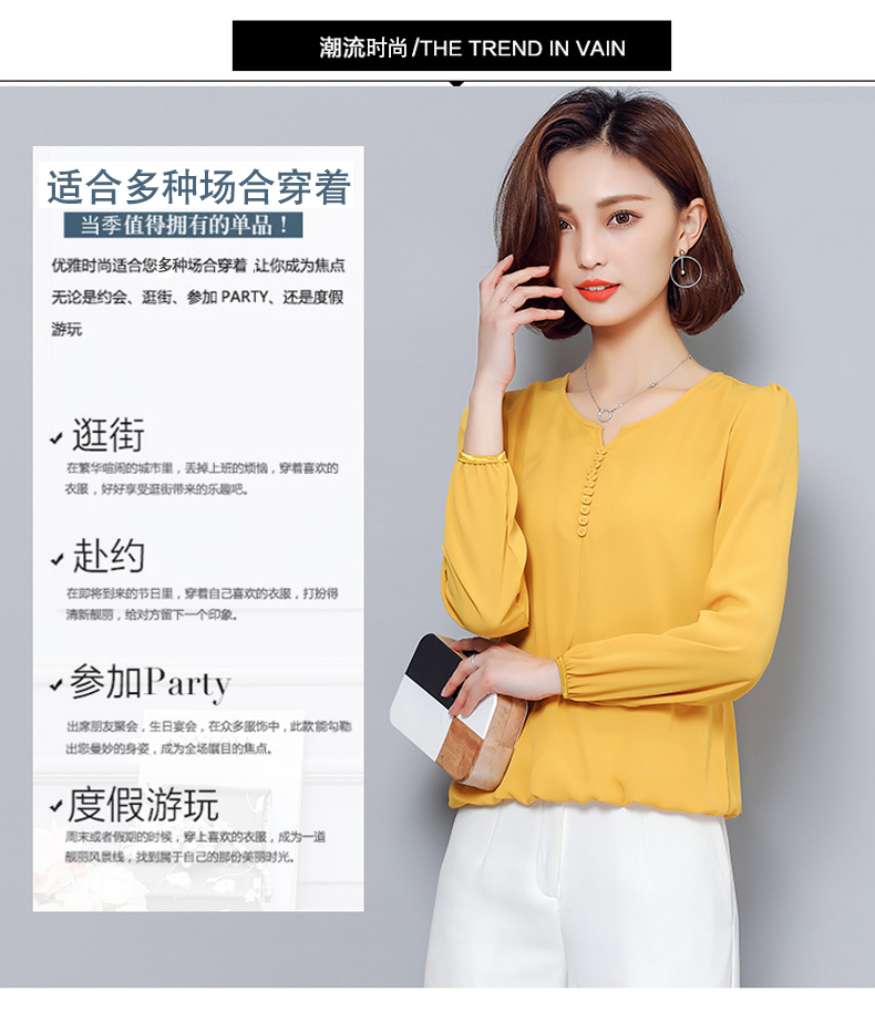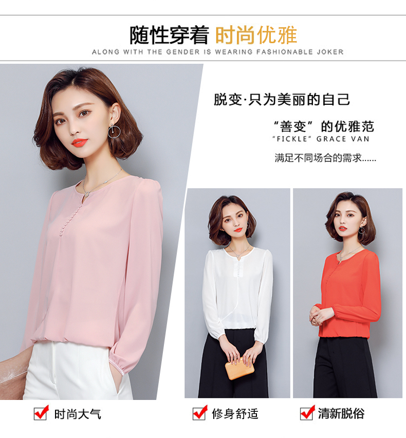 雪紡衫長袖簡約大碼女裝襯衫寬松顯瘦打底衫上衣女裝2019新款春款