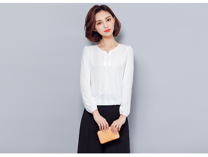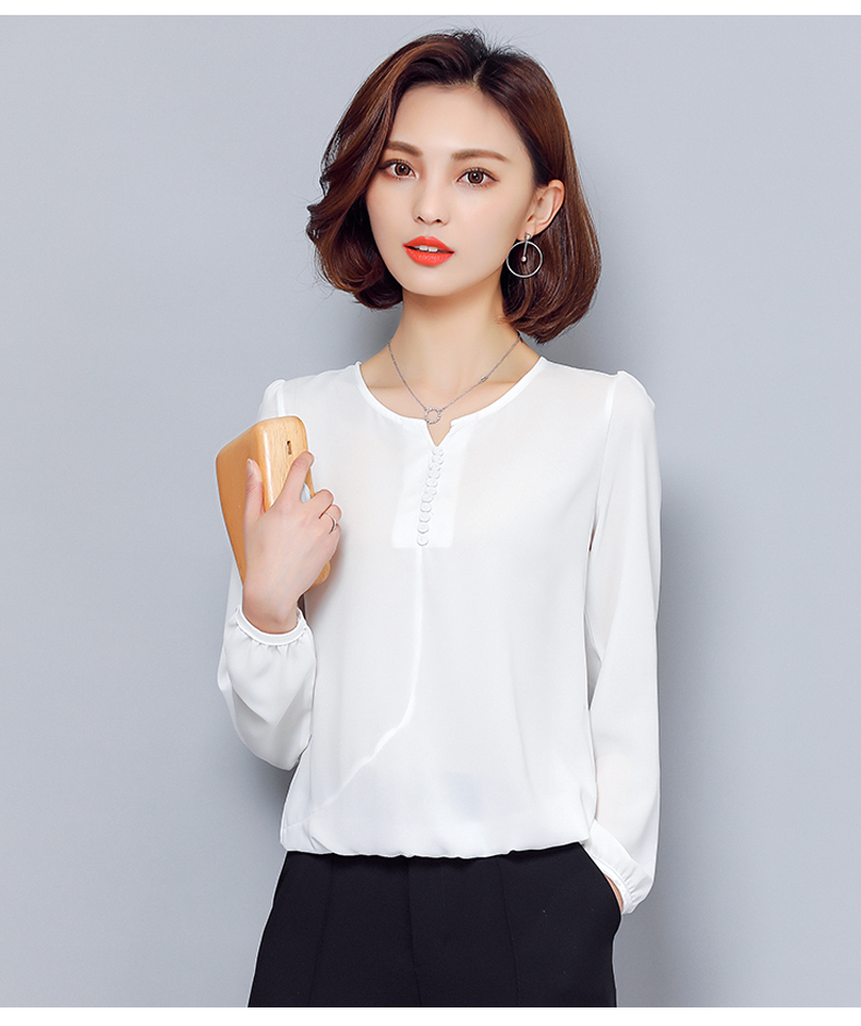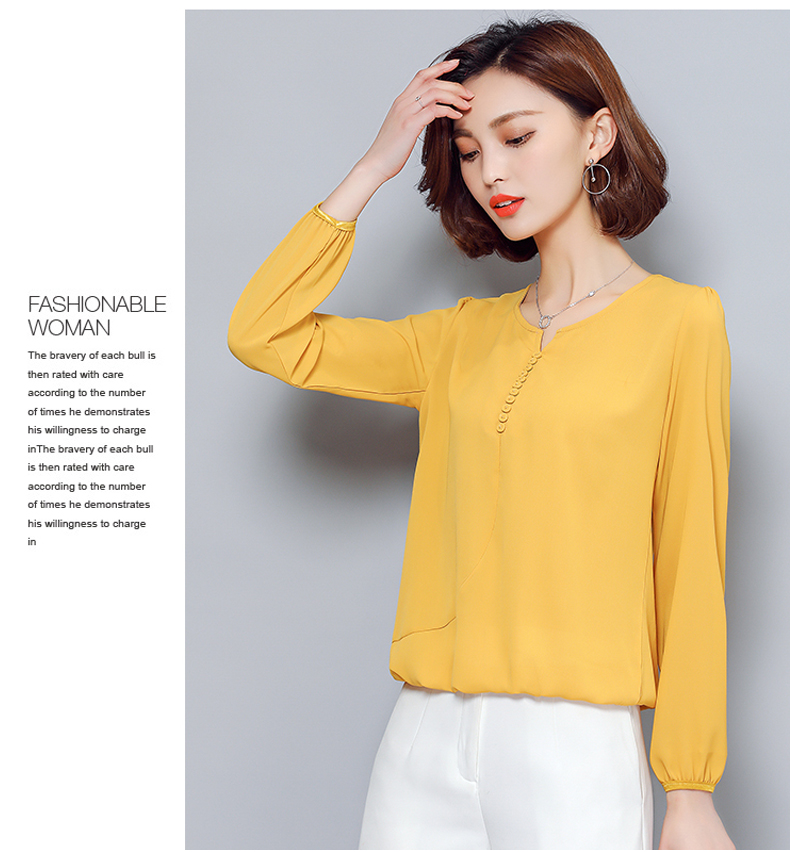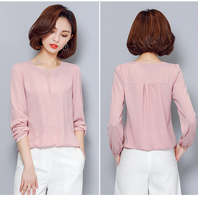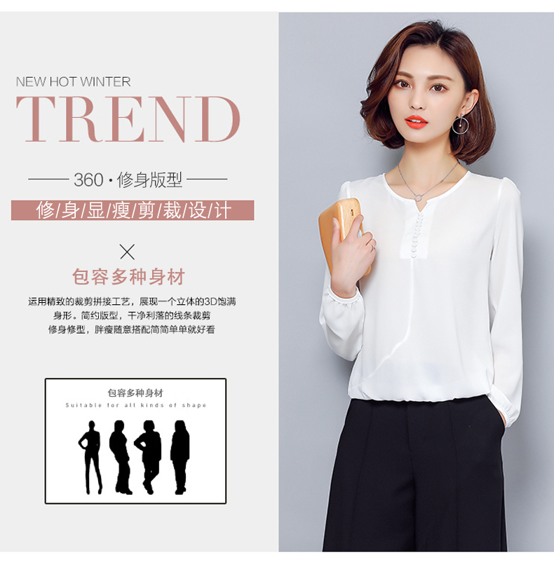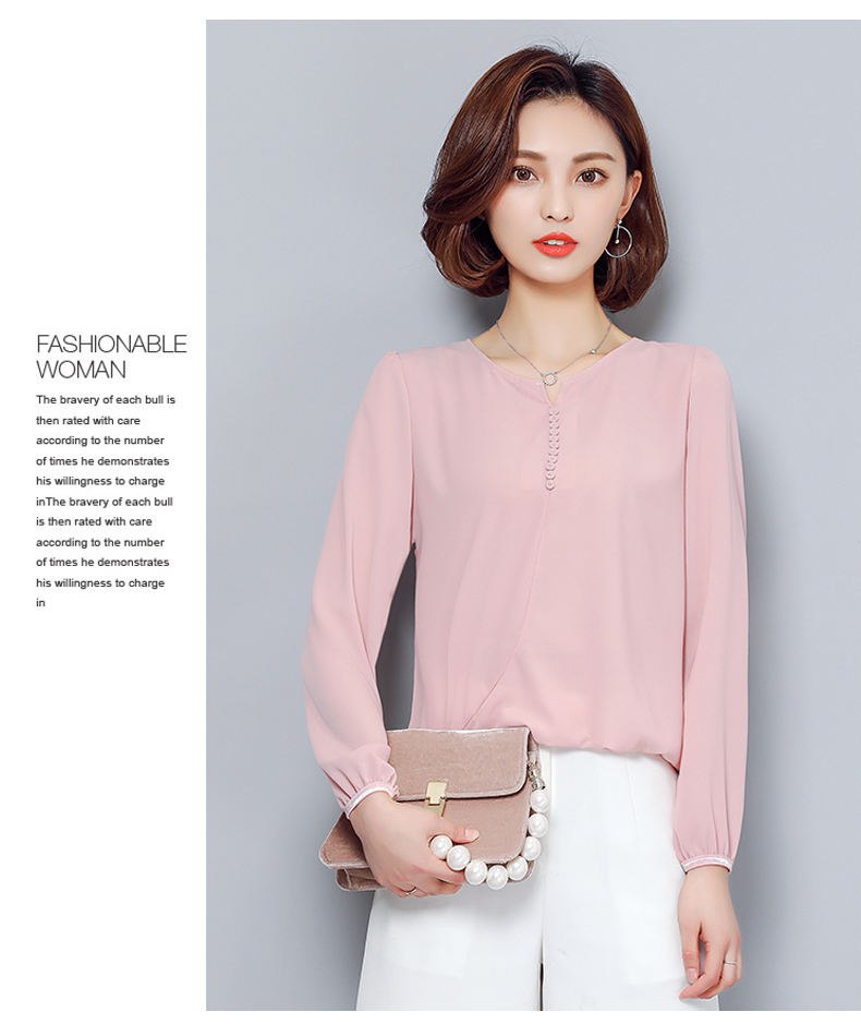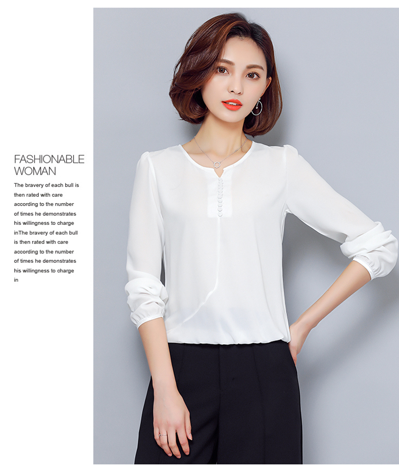 雪紡衫長袖簡約大碼女裝襯衫寬松顯瘦打底衫上衣女裝2019新款春款