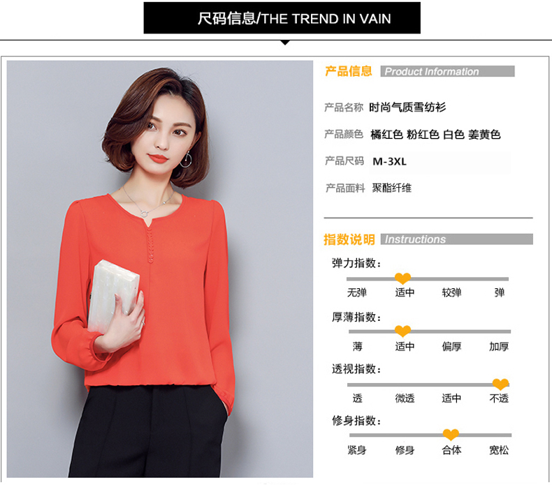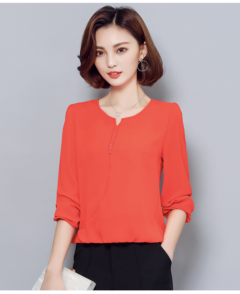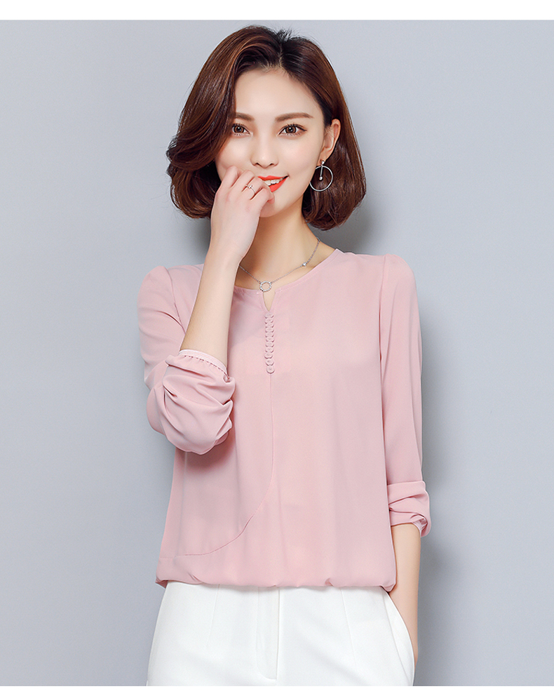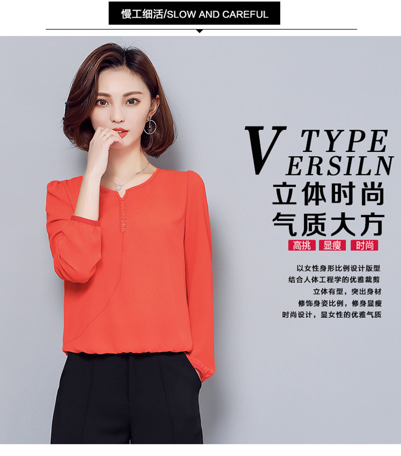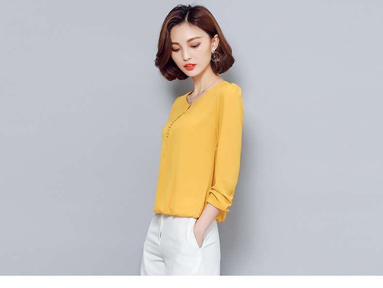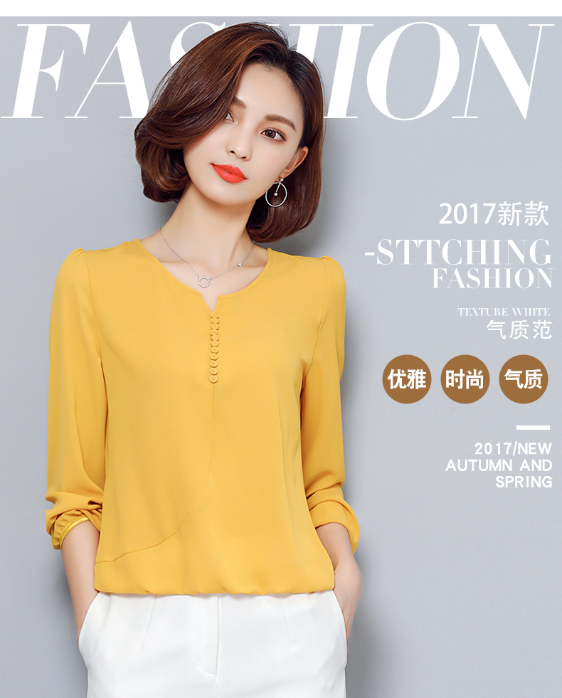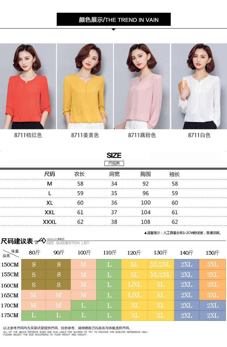 雪紡衫長袖簡約大碼女裝襯衫寬松顯瘦打底衫上衣女裝2019新款春款