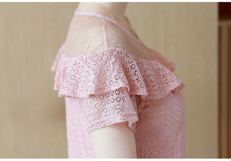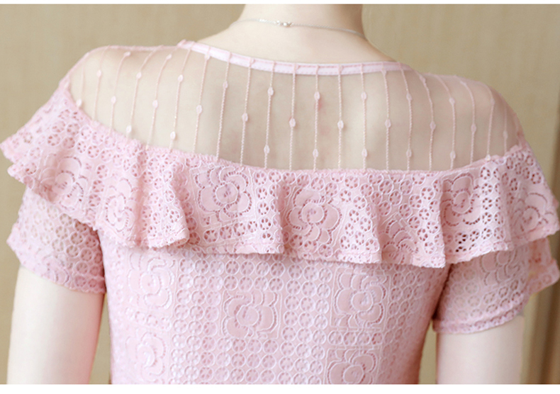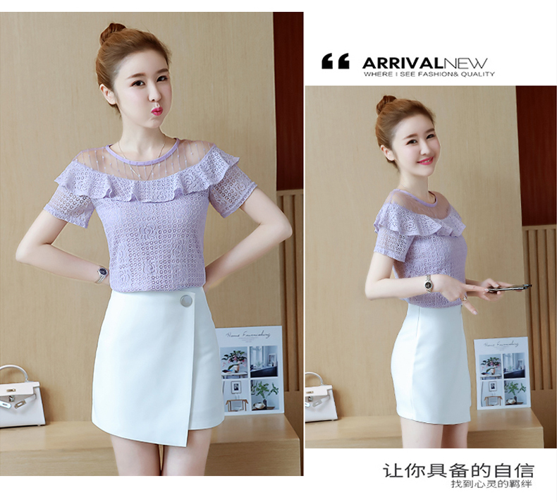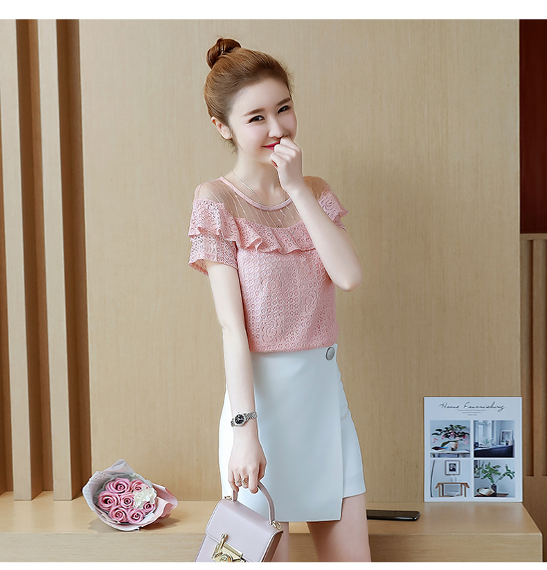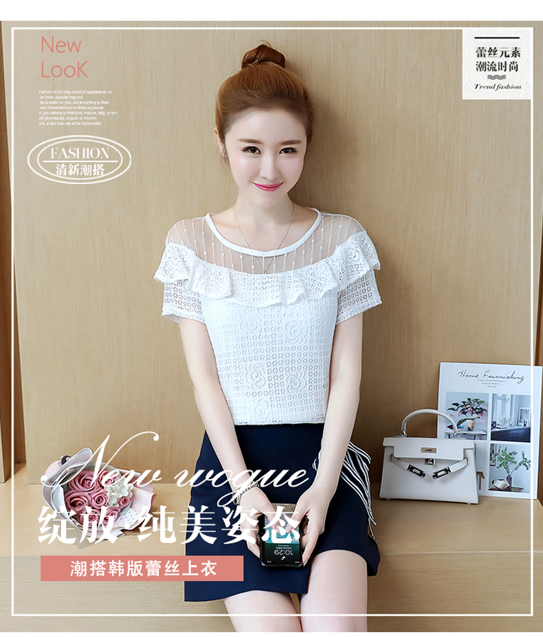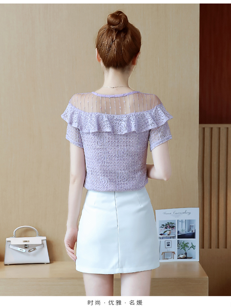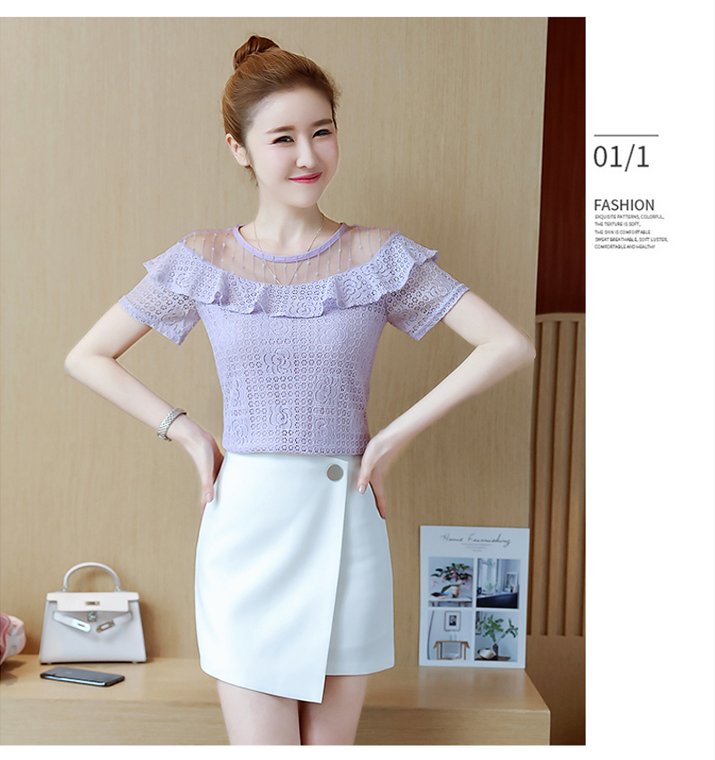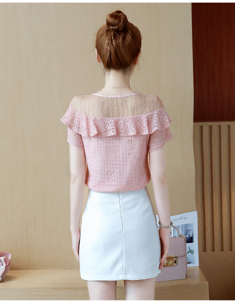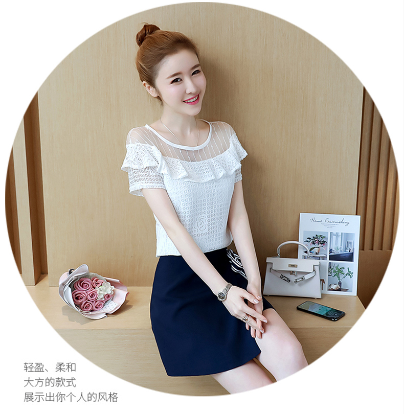雪紡衫女短袖2019新款夏裝飄逸上衣超仙甜美洋氣露肩網紗上衣蕾絲