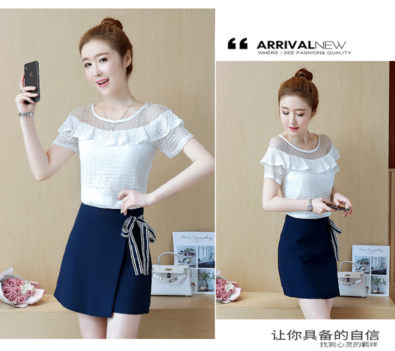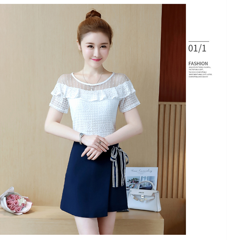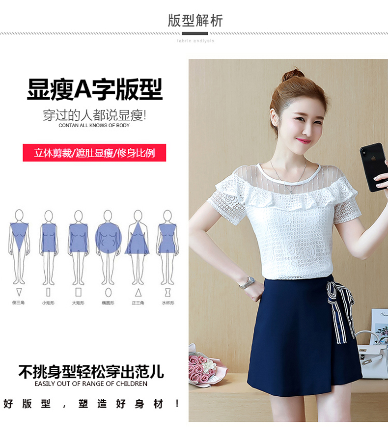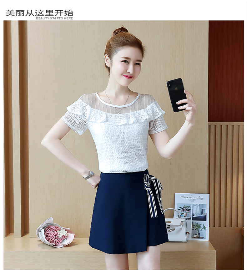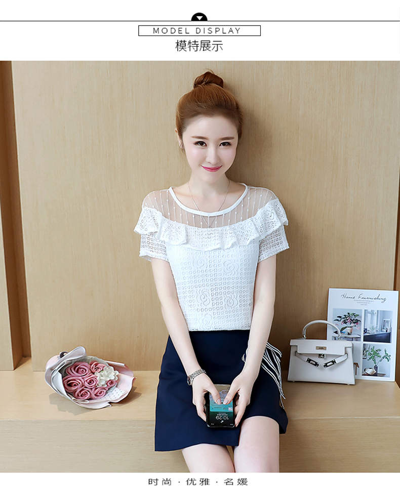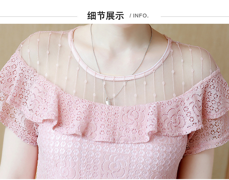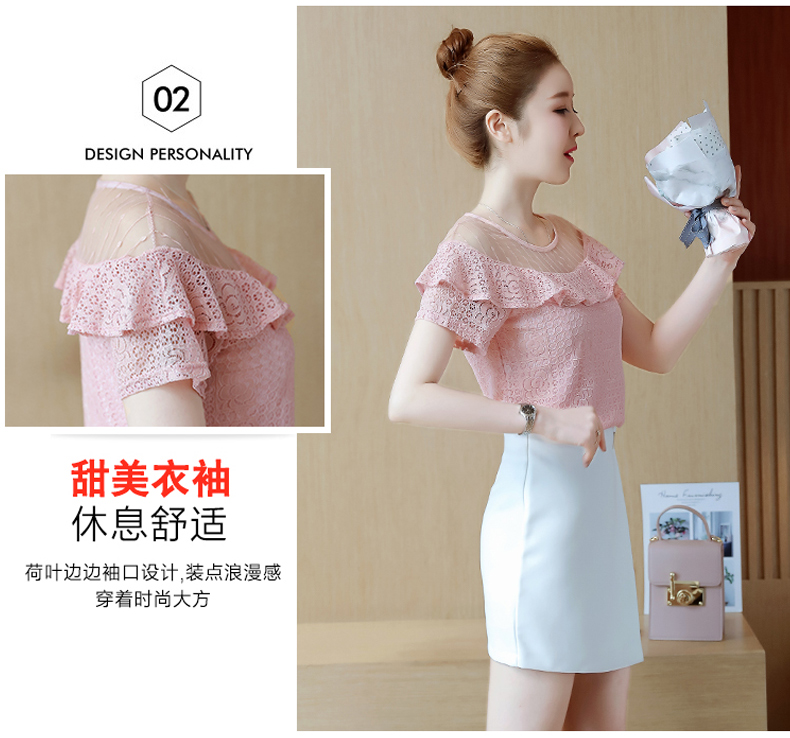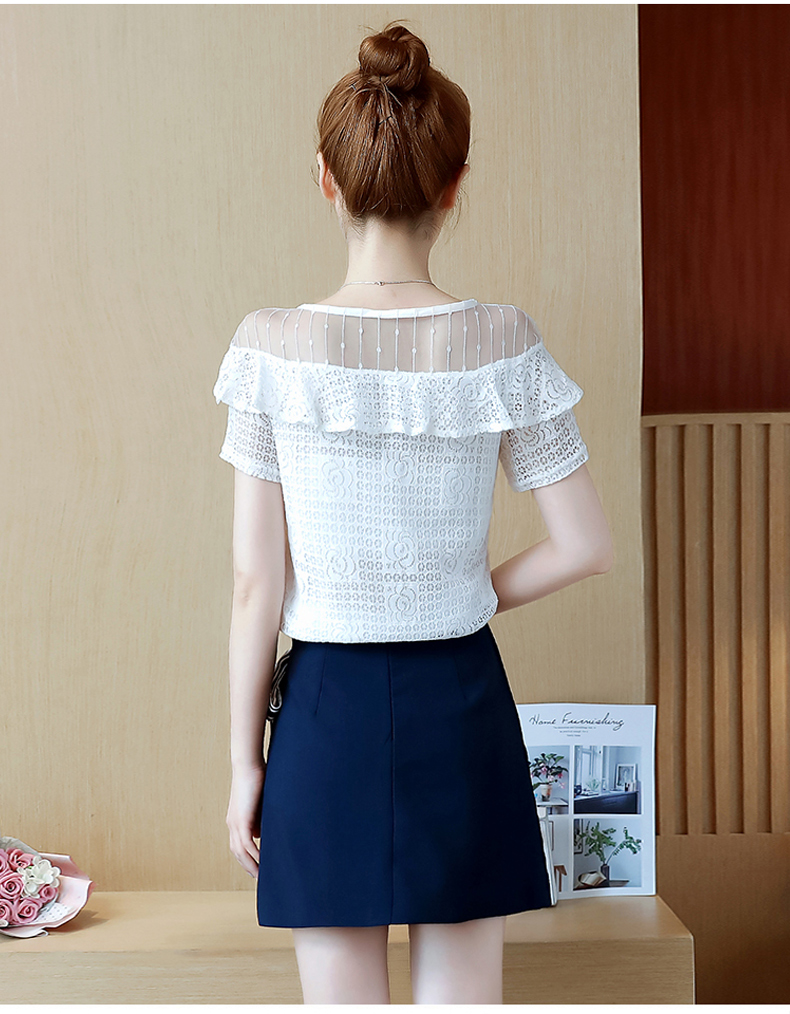 雪紡衫女短袖2019新款夏裝飄逸上衣超仙甜美洋氣露肩網紗上衣蕾絲