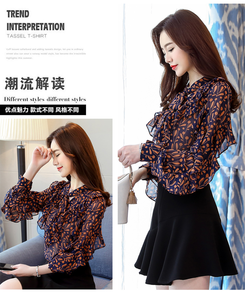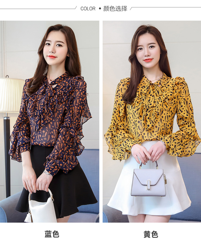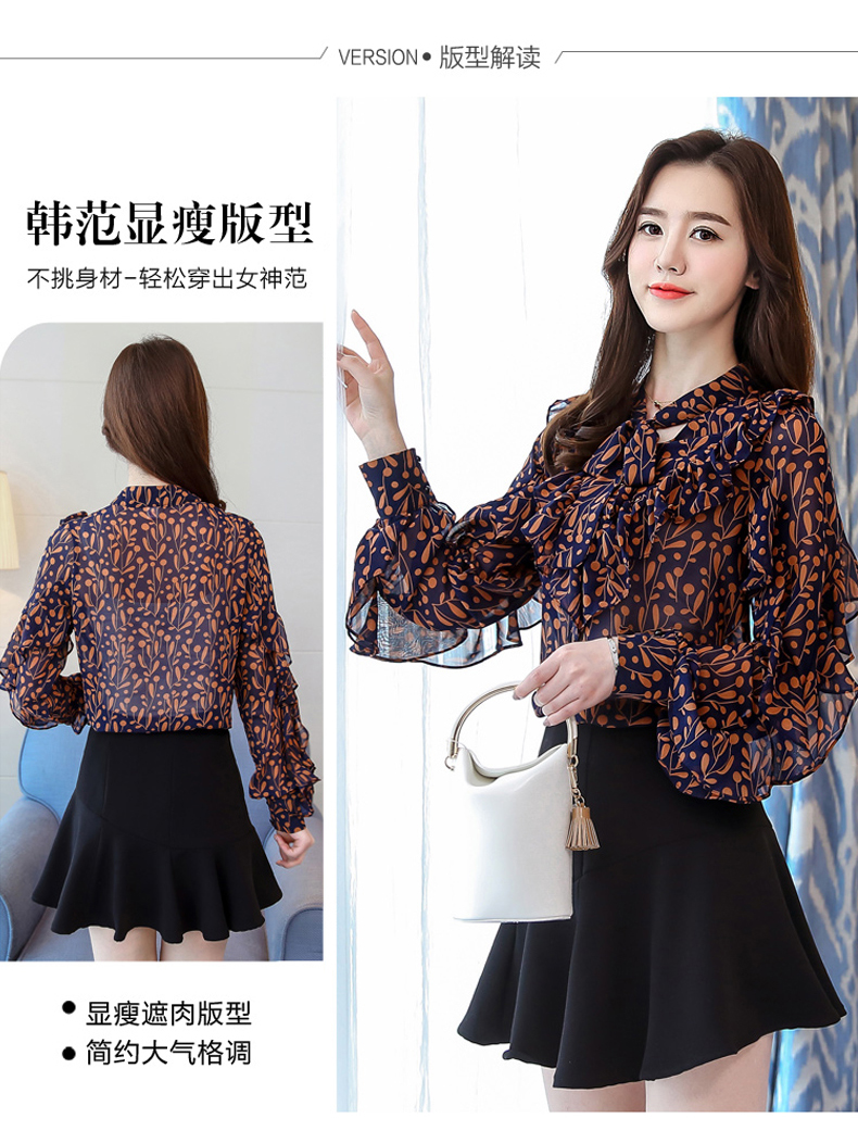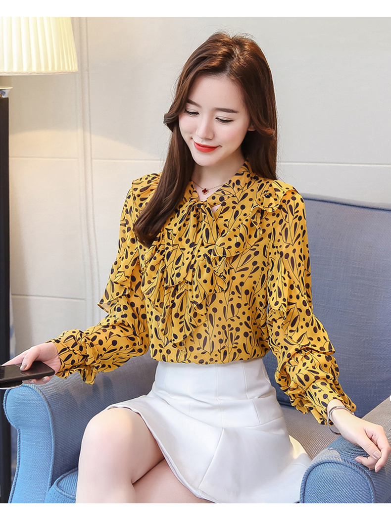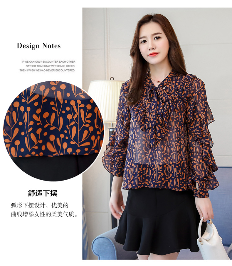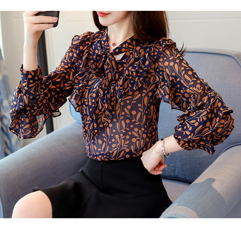雪紡衫女上衣寬松遮肚子荷葉襯衫小碎花洋氣小衫女裝2019新款春款