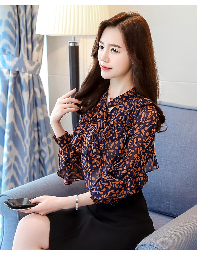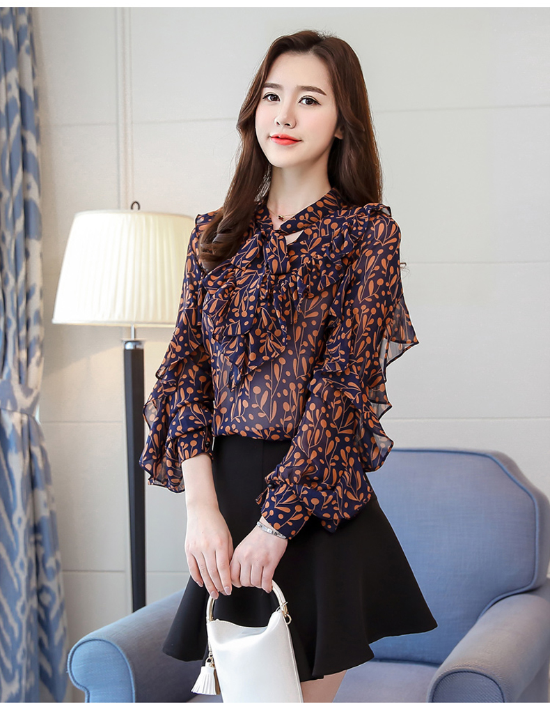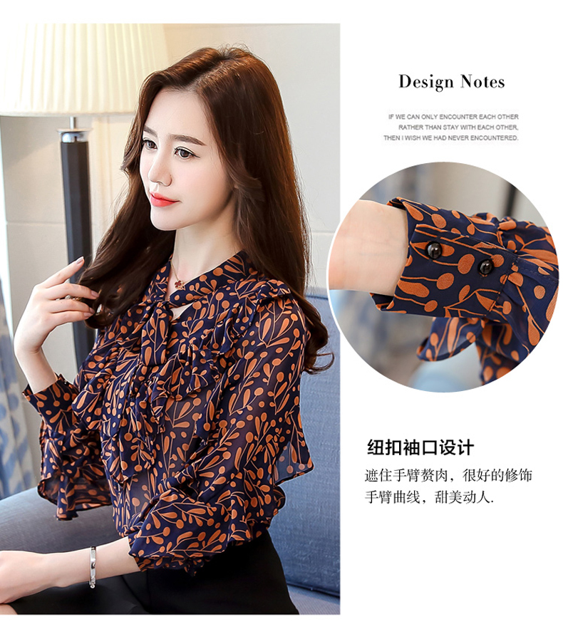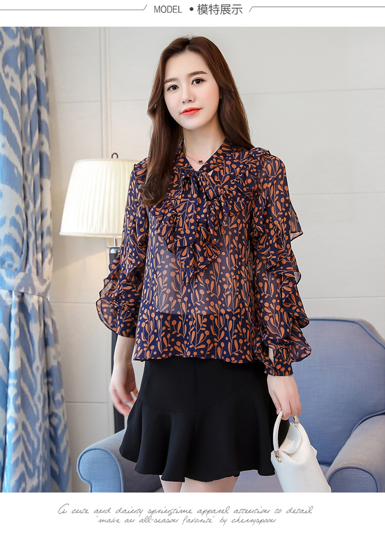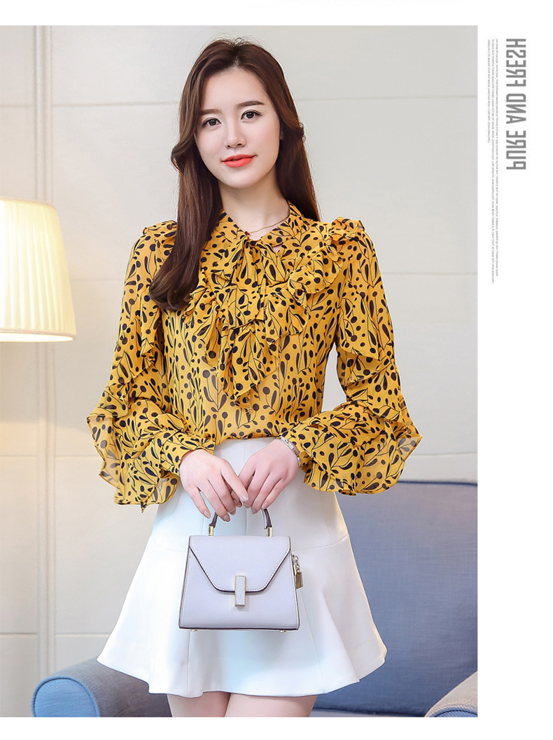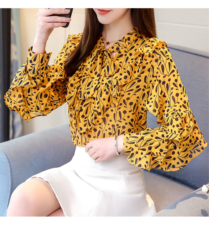 雪紡衫女上衣寬松遮肚子荷葉襯衫小碎花洋氣小衫女裝2019新款春款