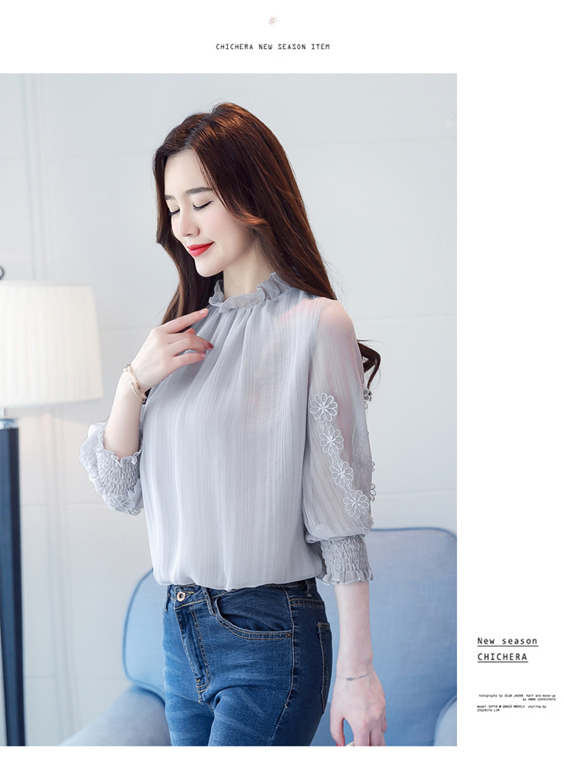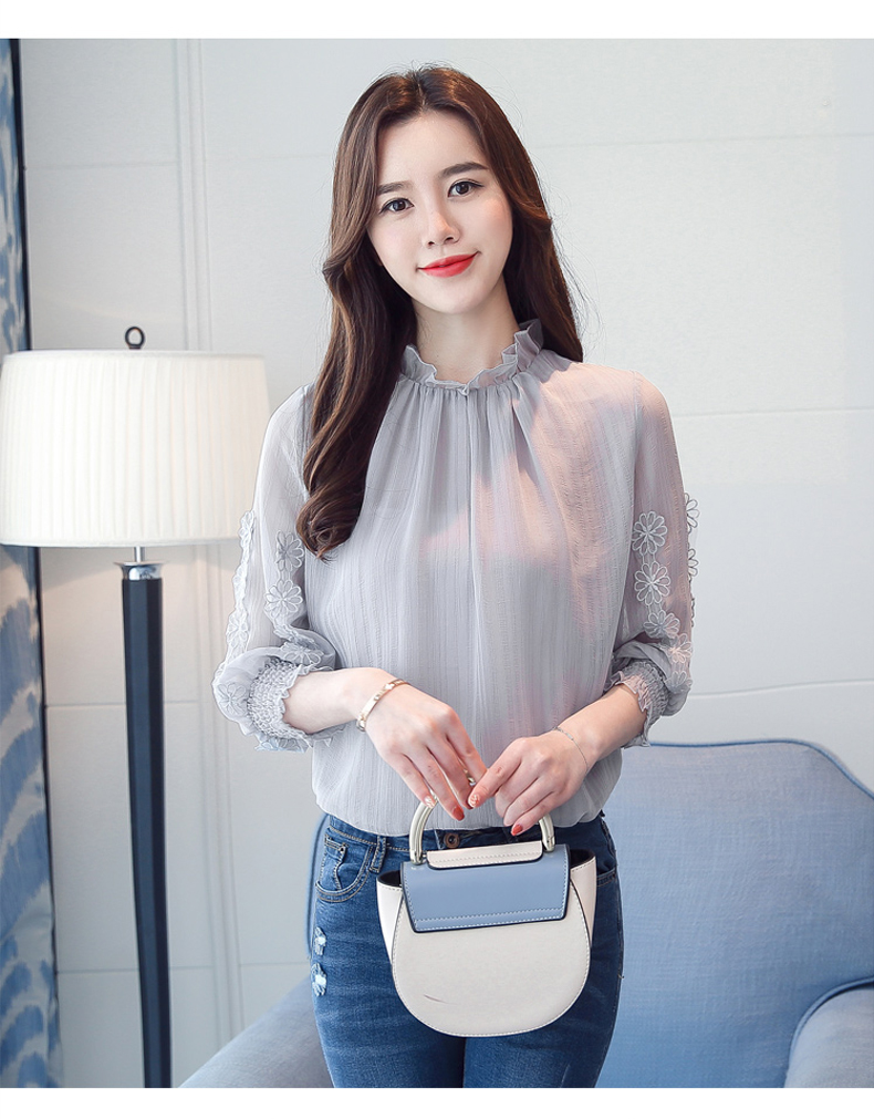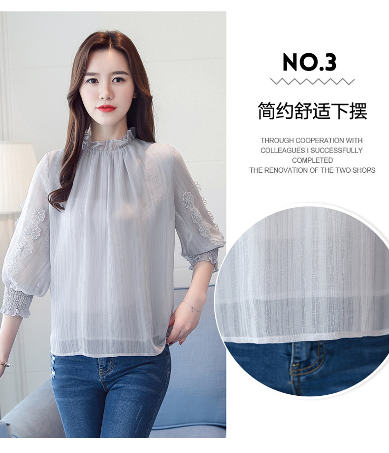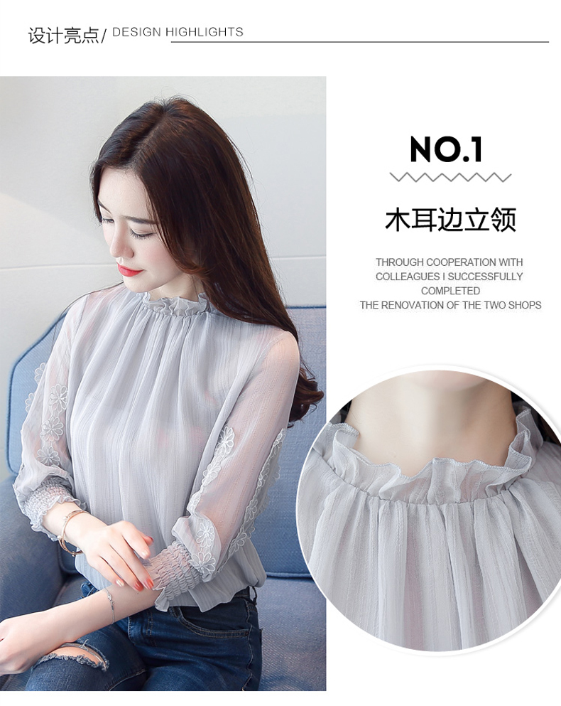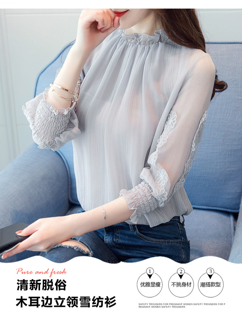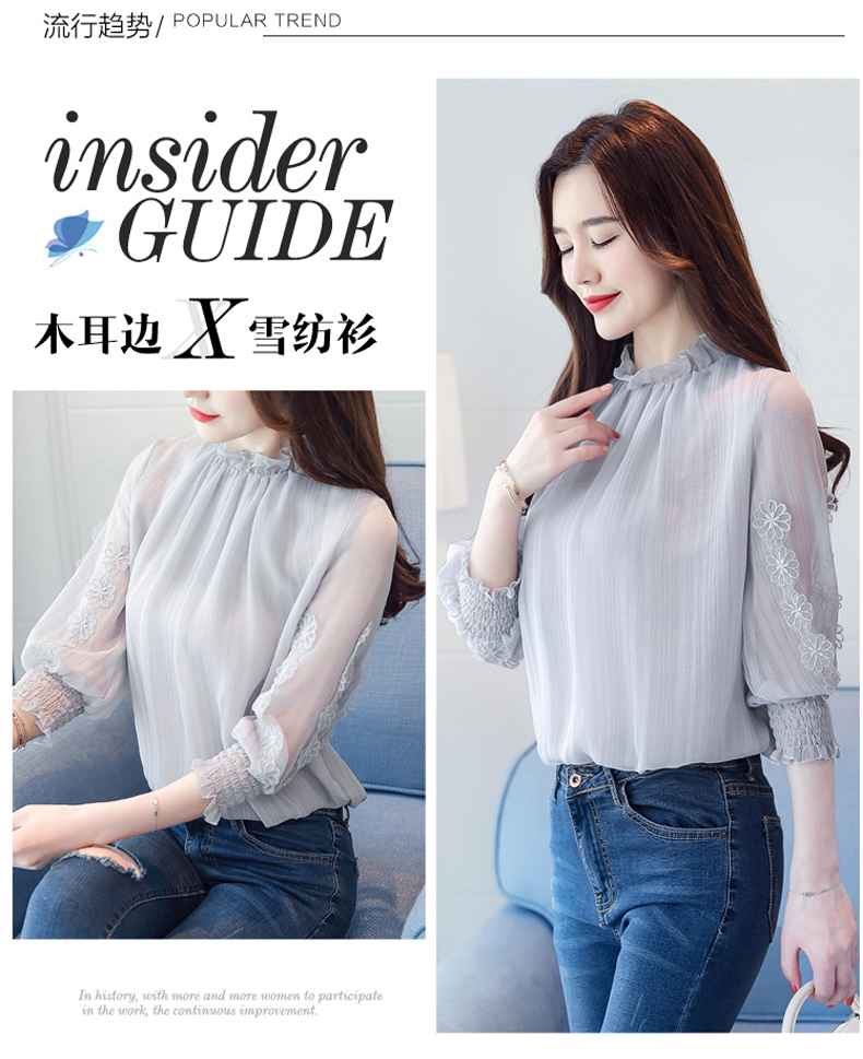 雪紡衫韓版木耳邊蕾絲衫超仙甜美短袖洋氣小衫潮女裝2019新款春款