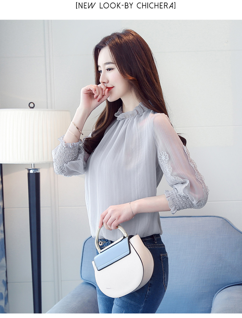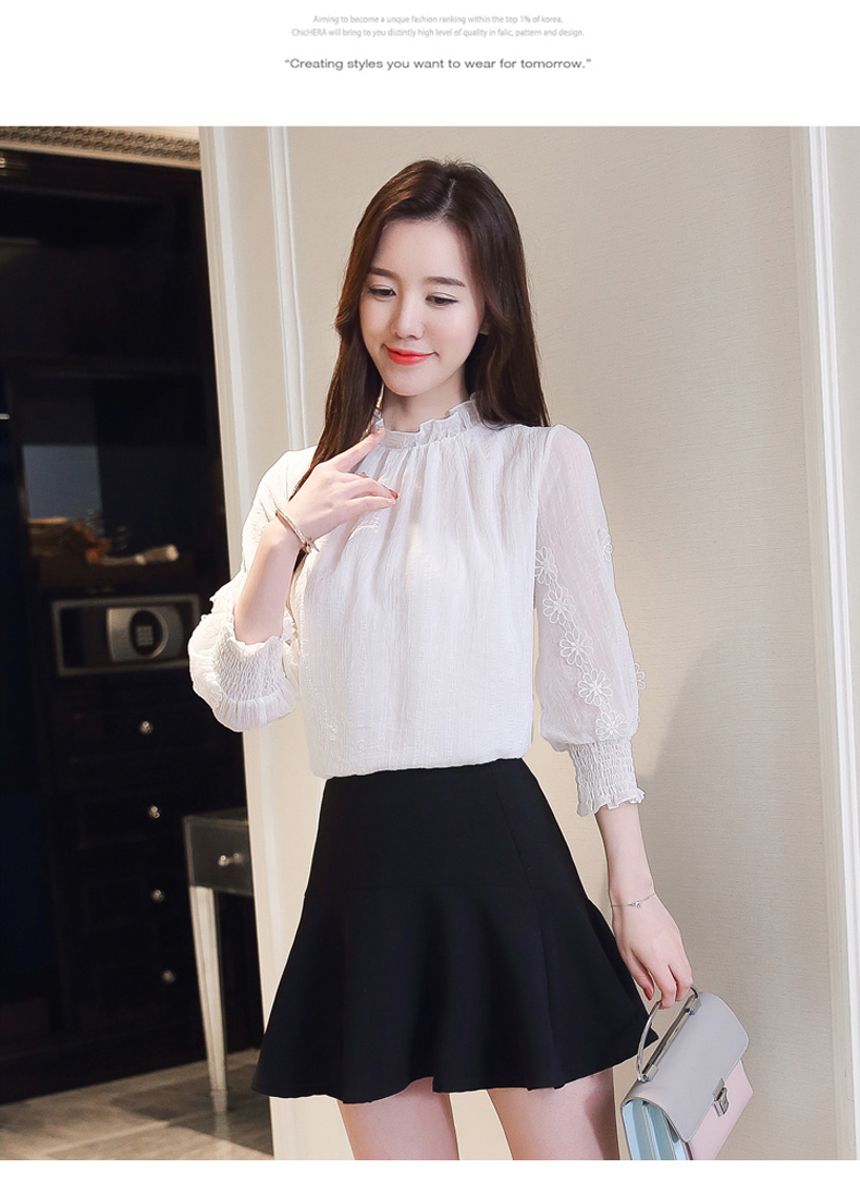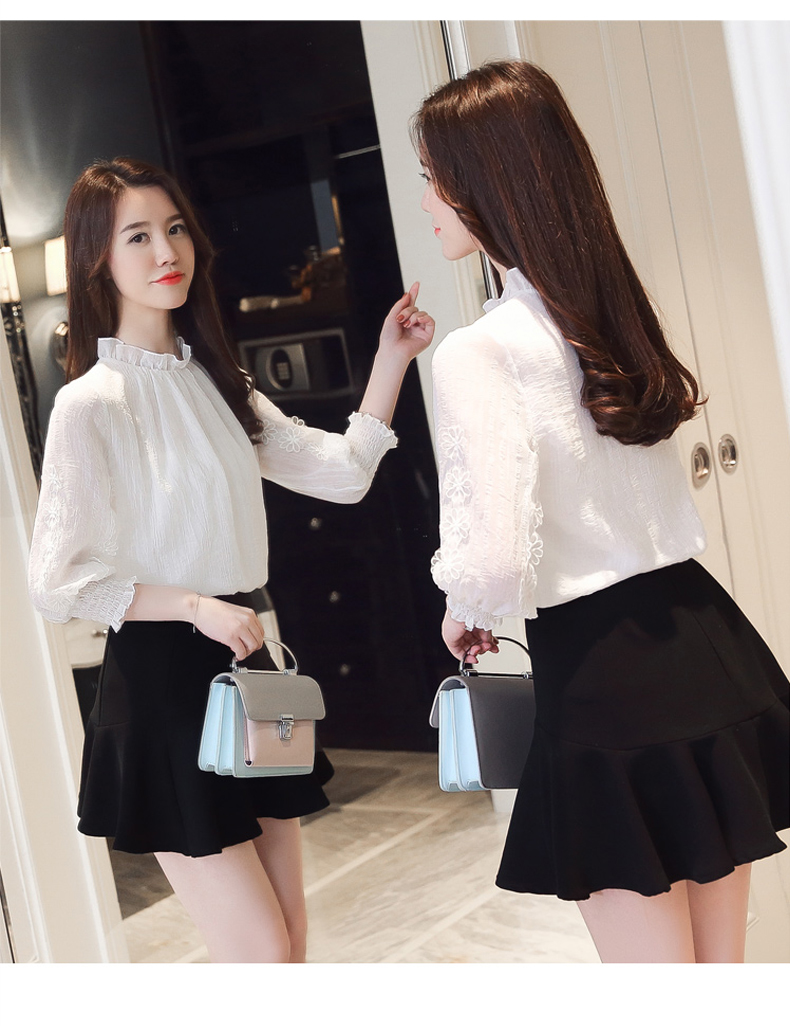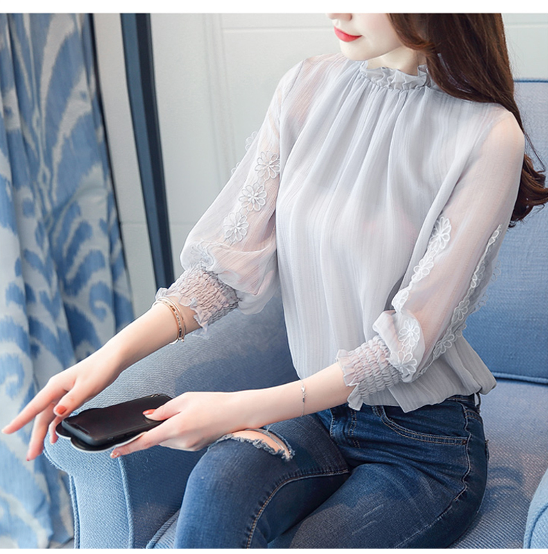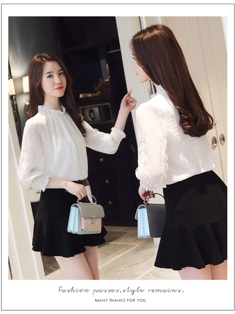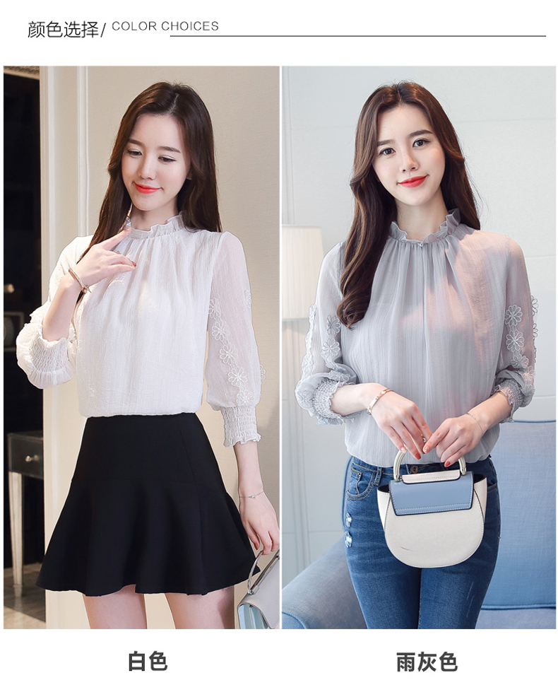 雪紡衫韓版木耳邊蕾絲衫超仙甜美短袖洋氣小衫潮女裝2019新款春款