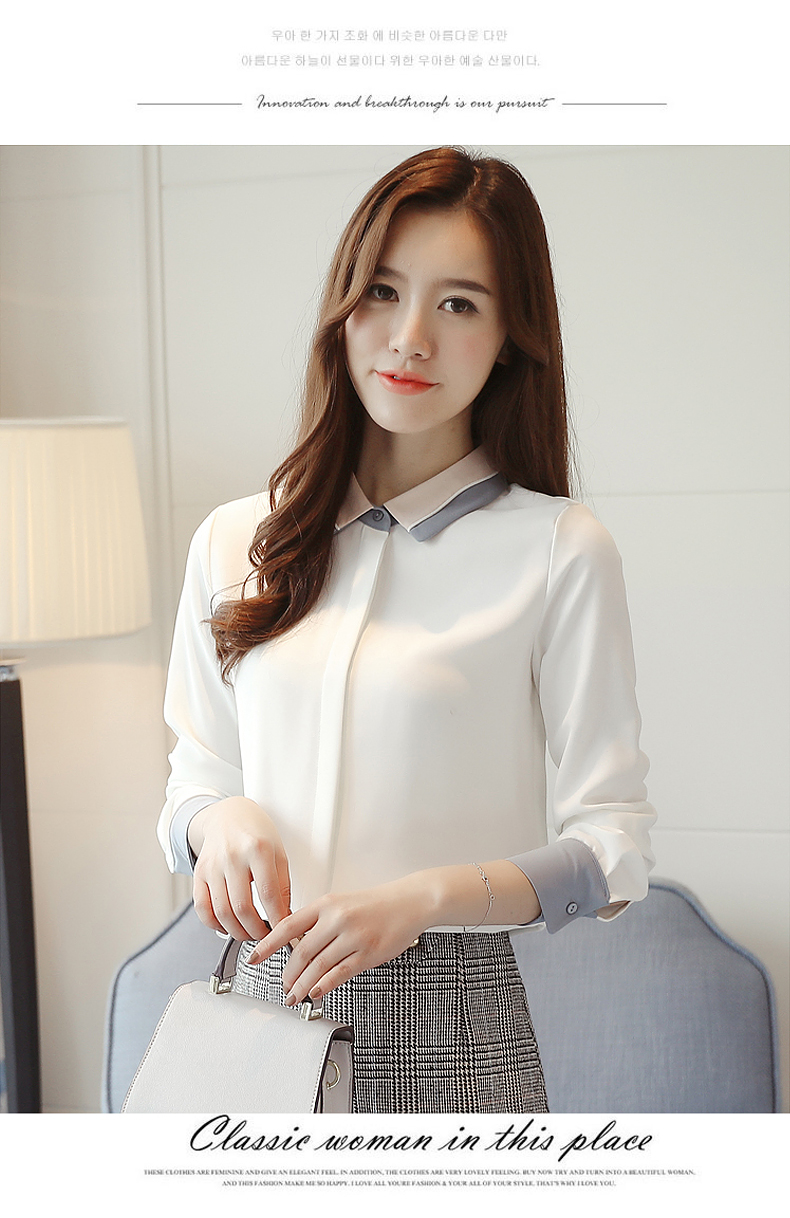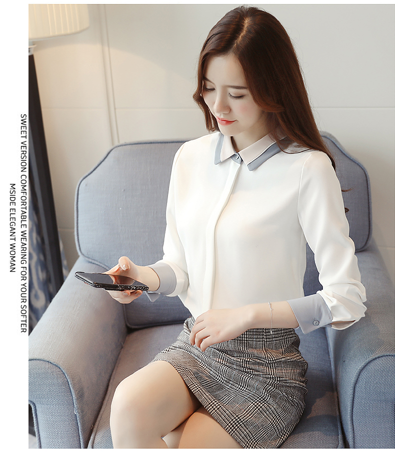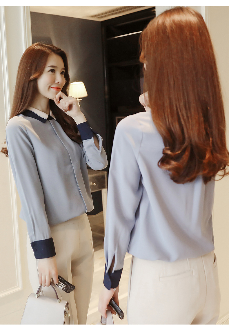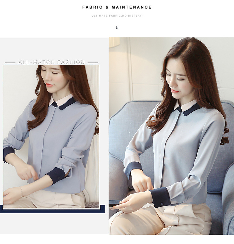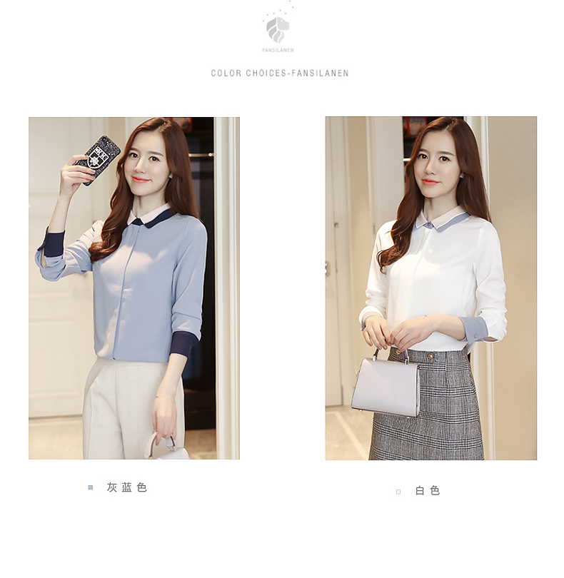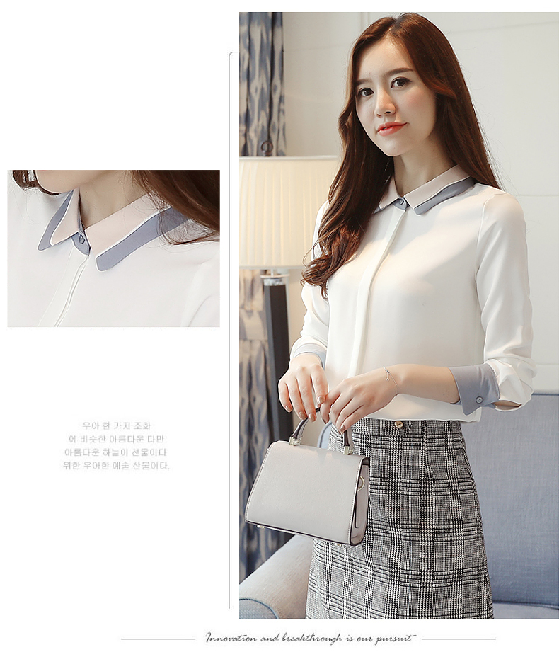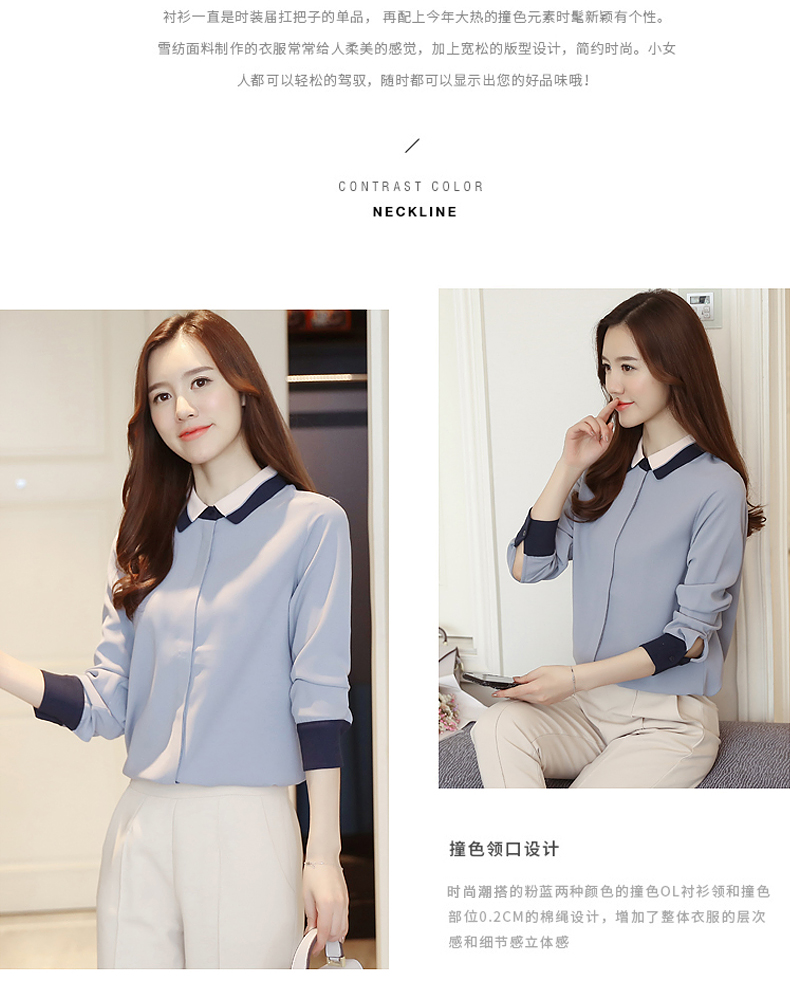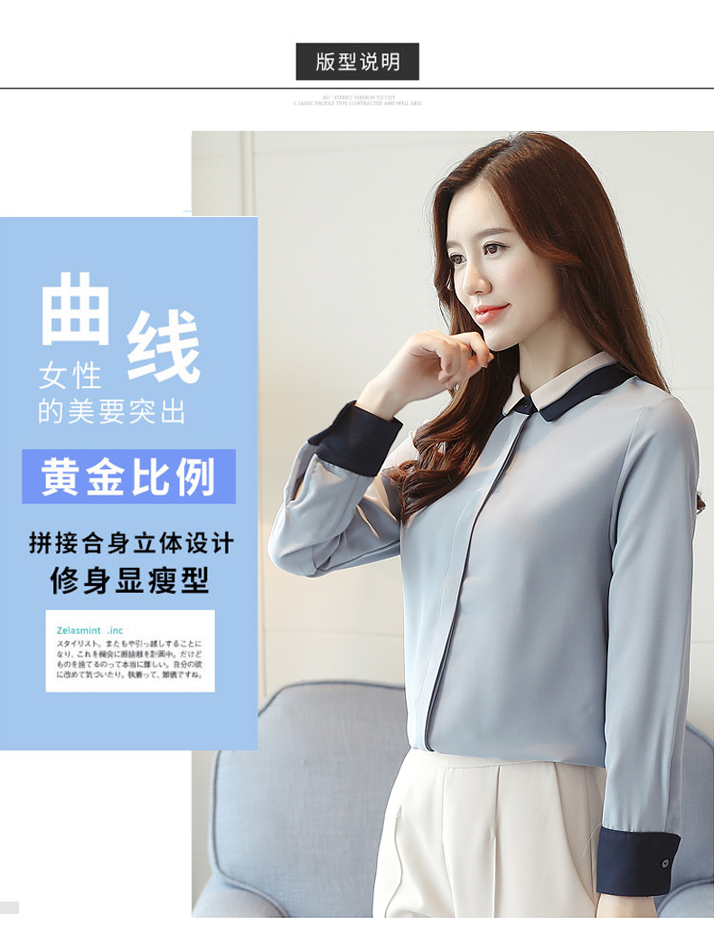 襯衫女長袖撞色ol氣質職業襯衣洋氣小衫雪紡襯衫女裝2019新款春款