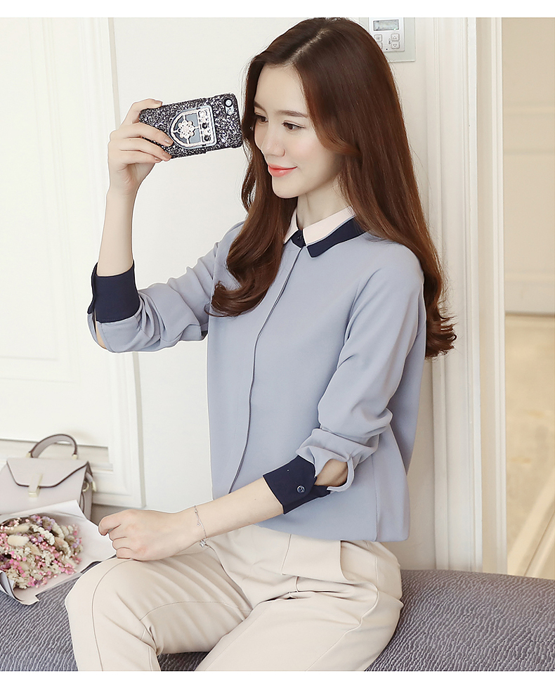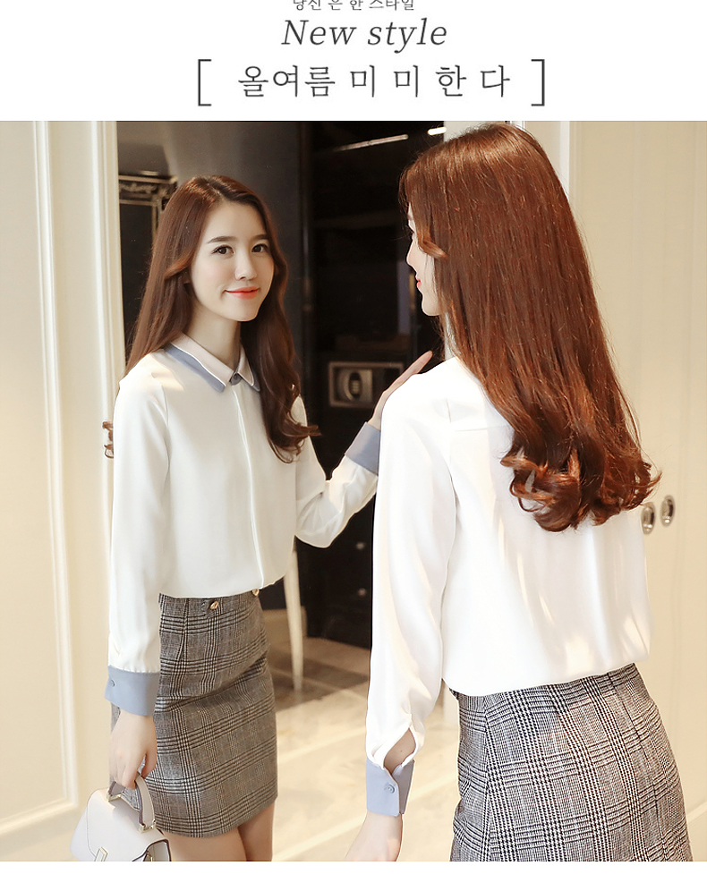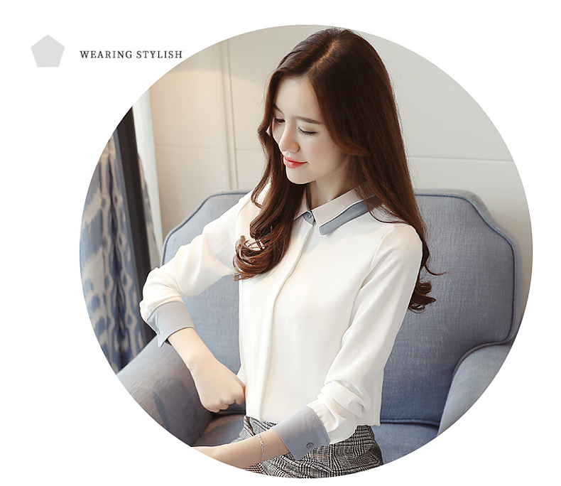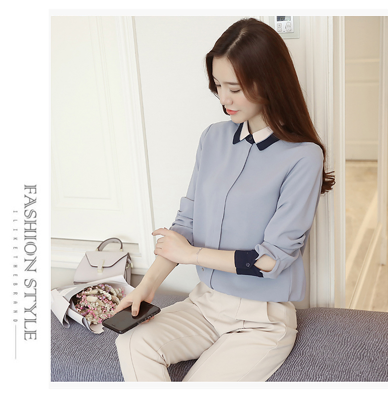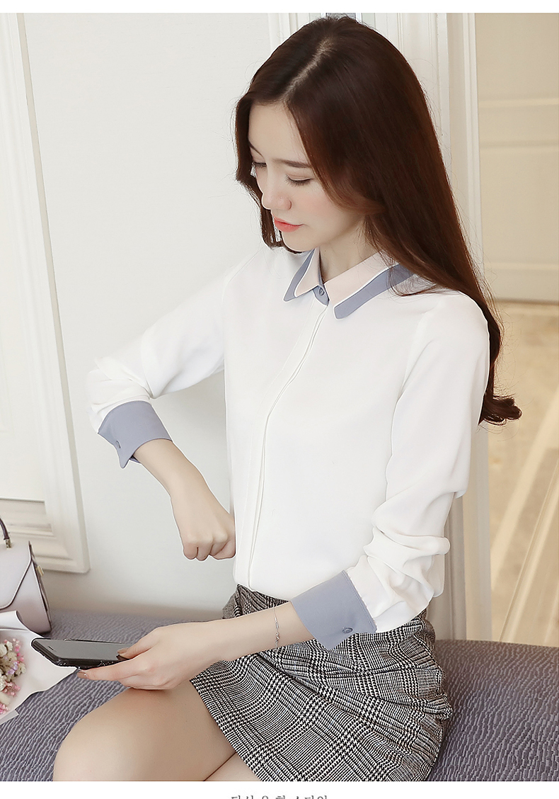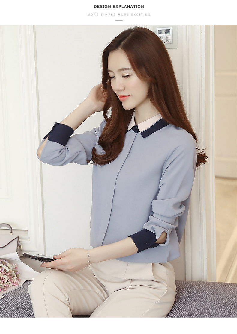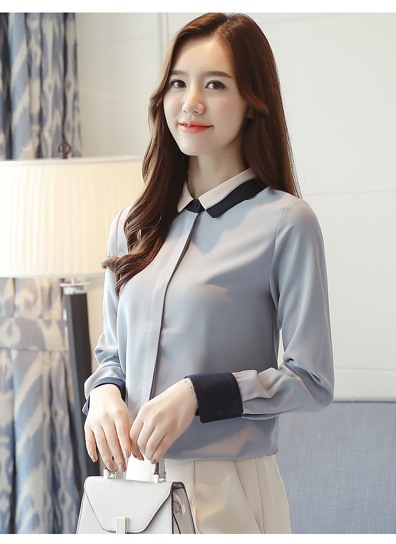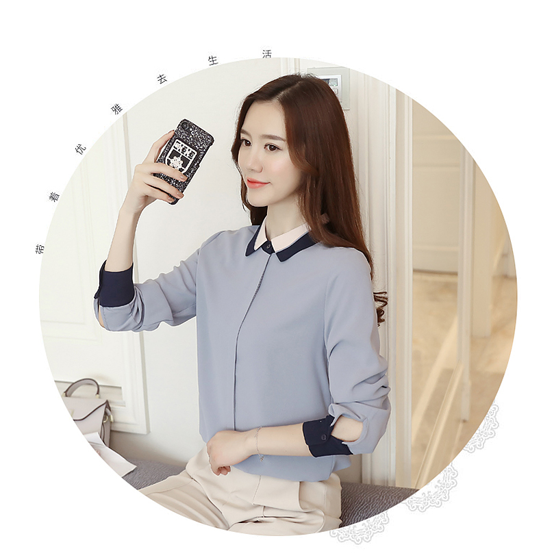襯衫女長袖撞色ol氣質職業襯衣洋氣小衫雪紡襯衫女裝2019新款春款