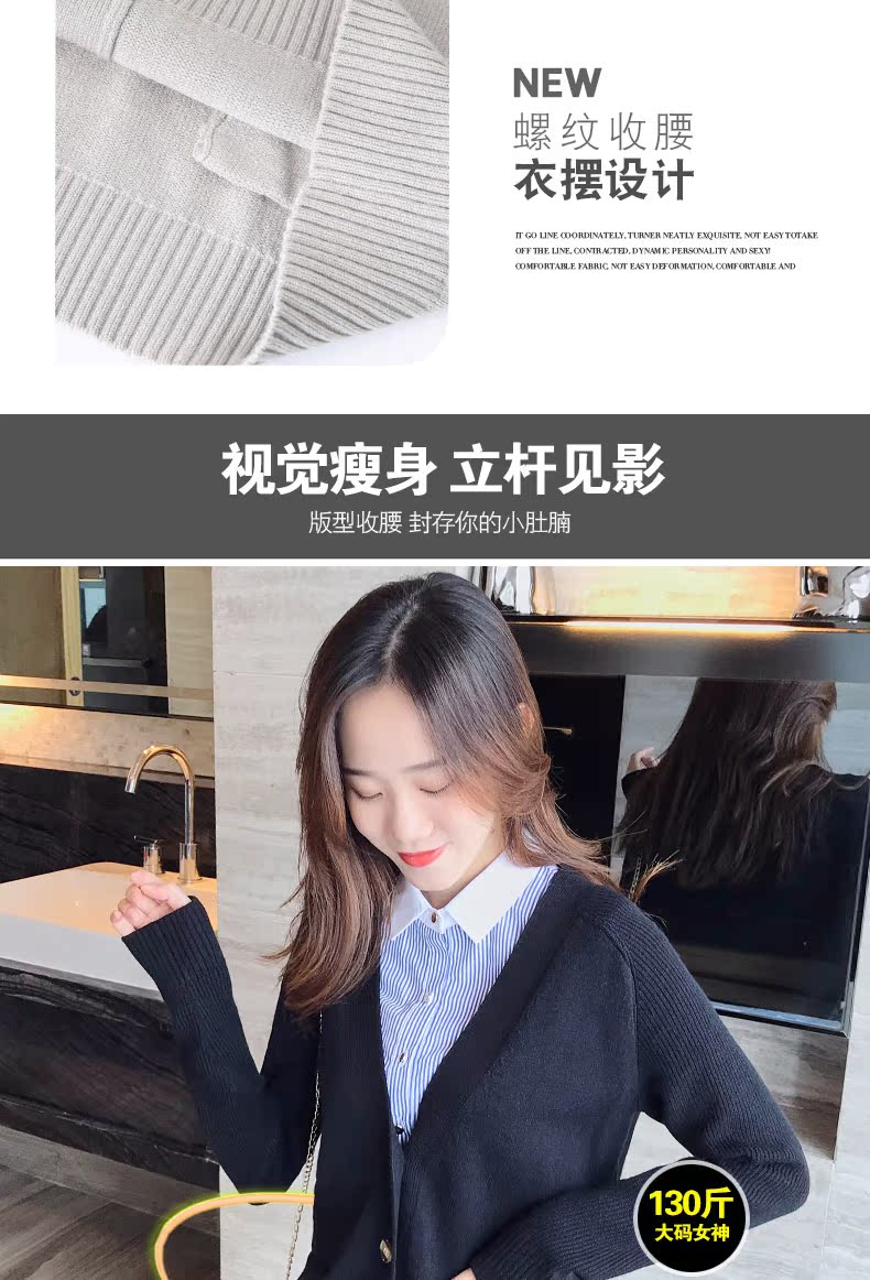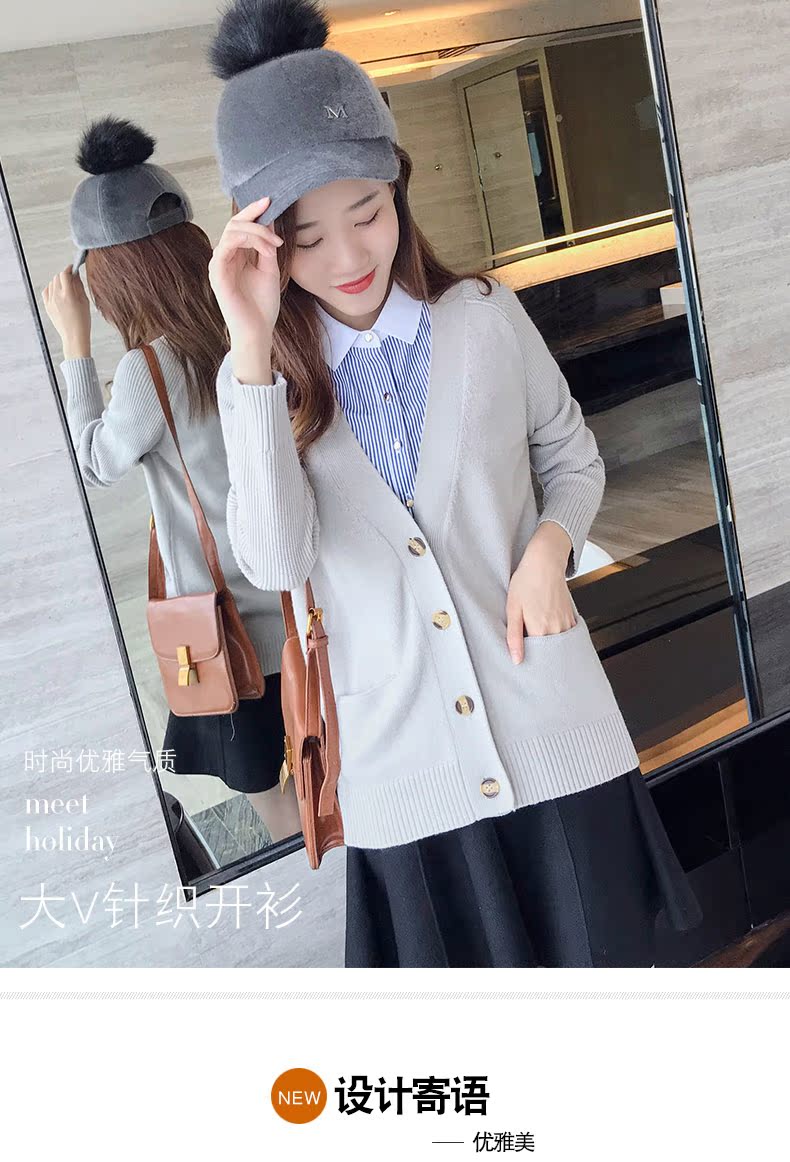針織開衫女短款外套2018秋冬V領長袖寬松百搭外穿打底毛衣外套厚