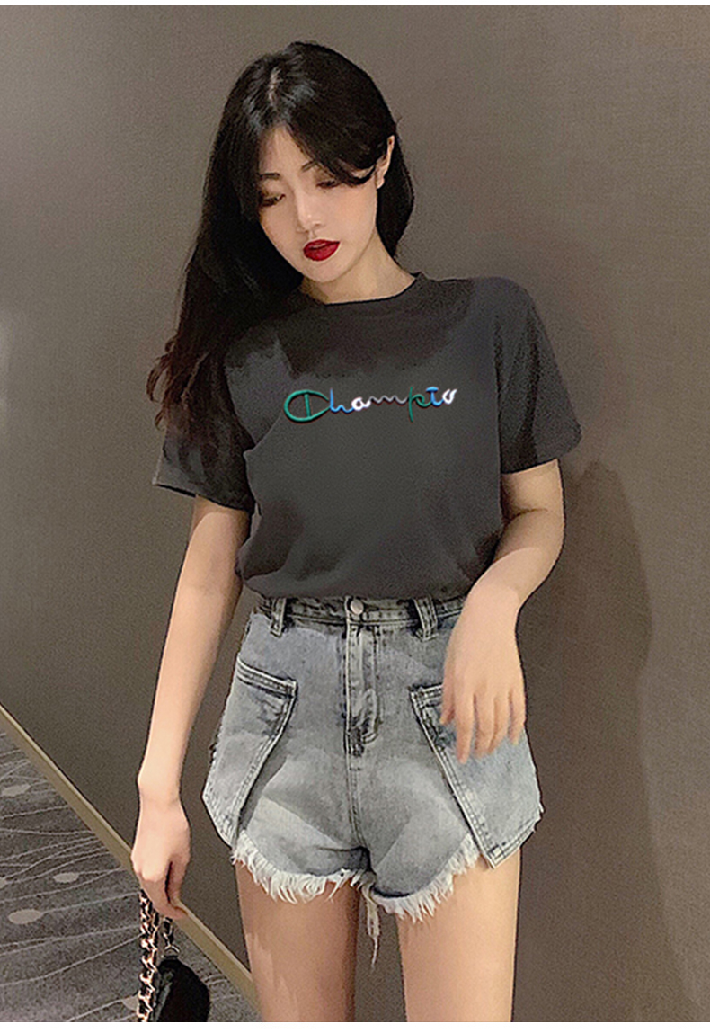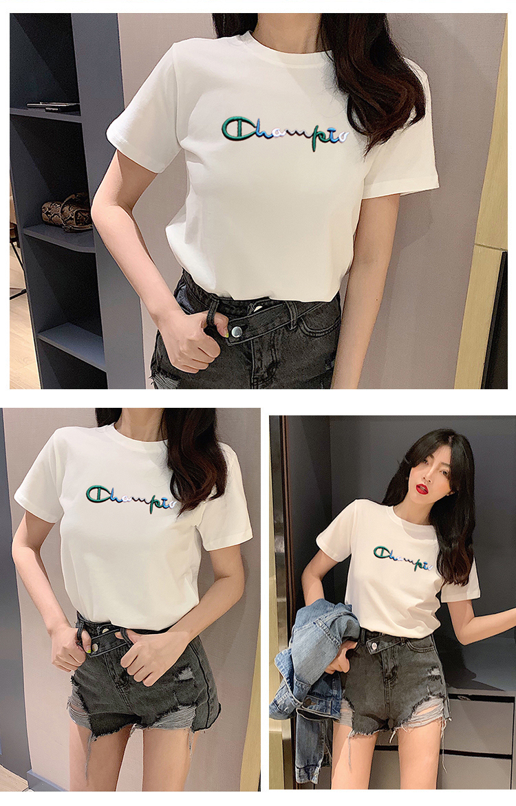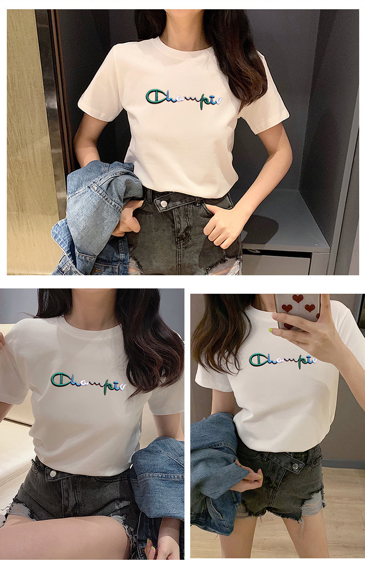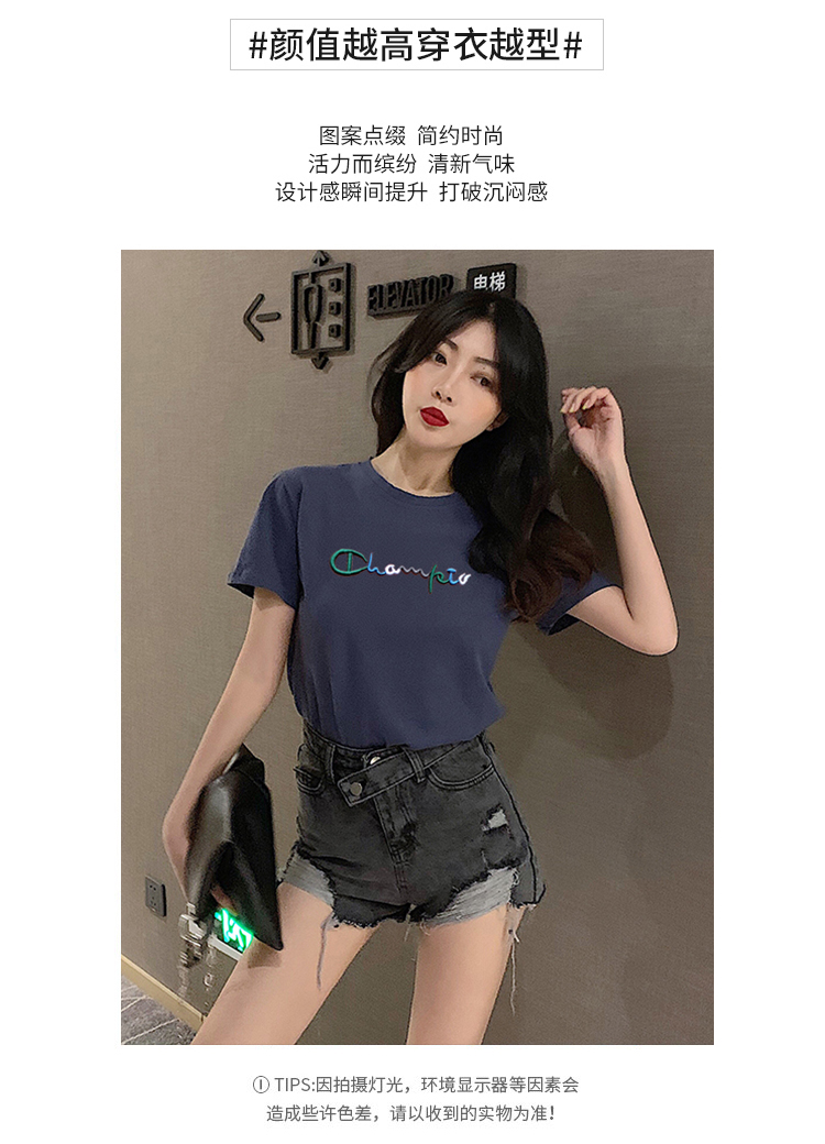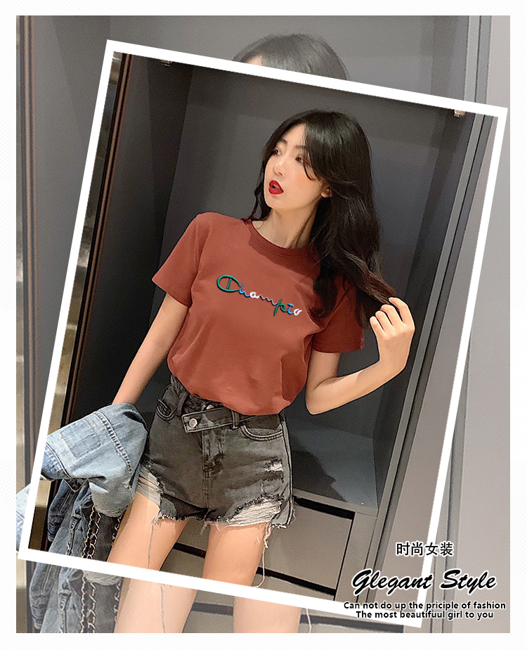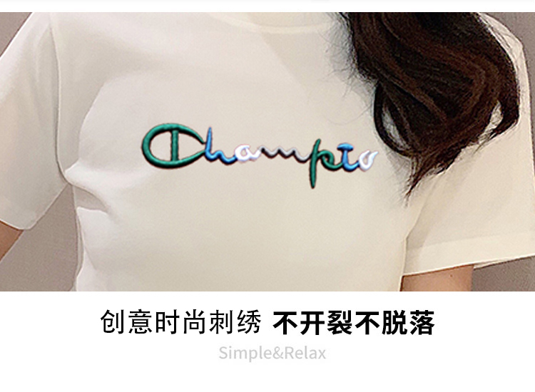 超火cec純棉短袖t恤女夏2019新款ins潮韓版半袖白色寬松刺繡上衣