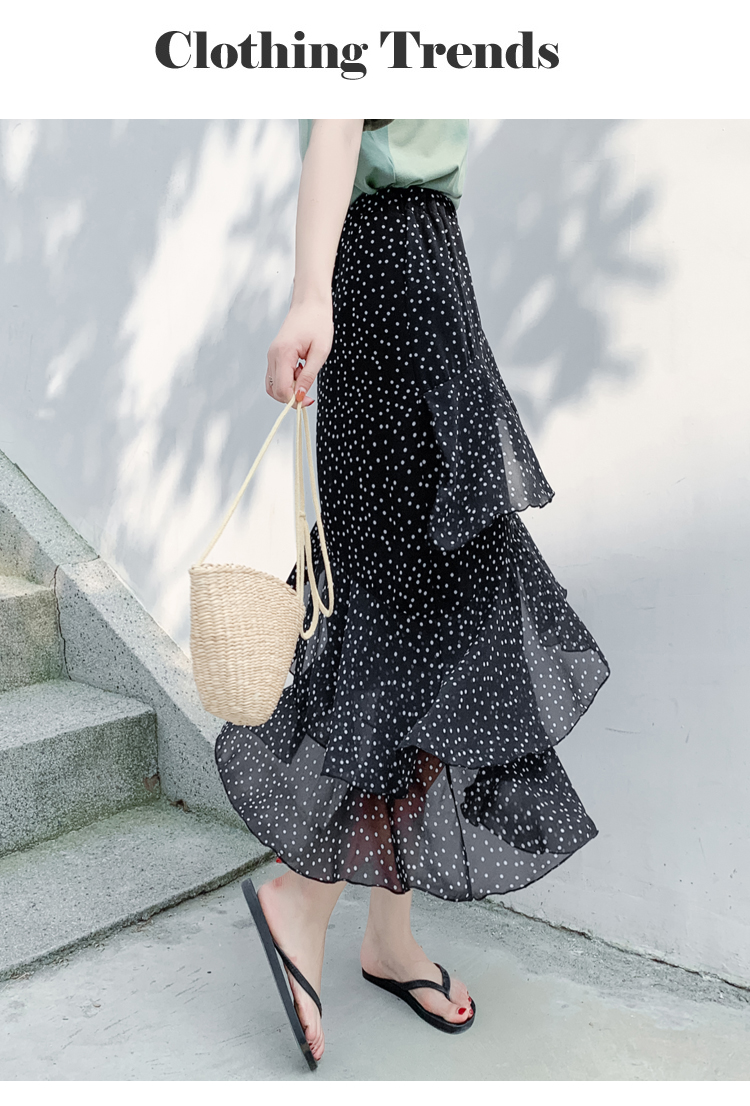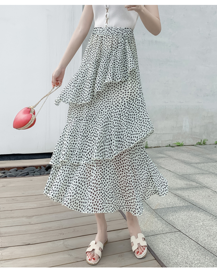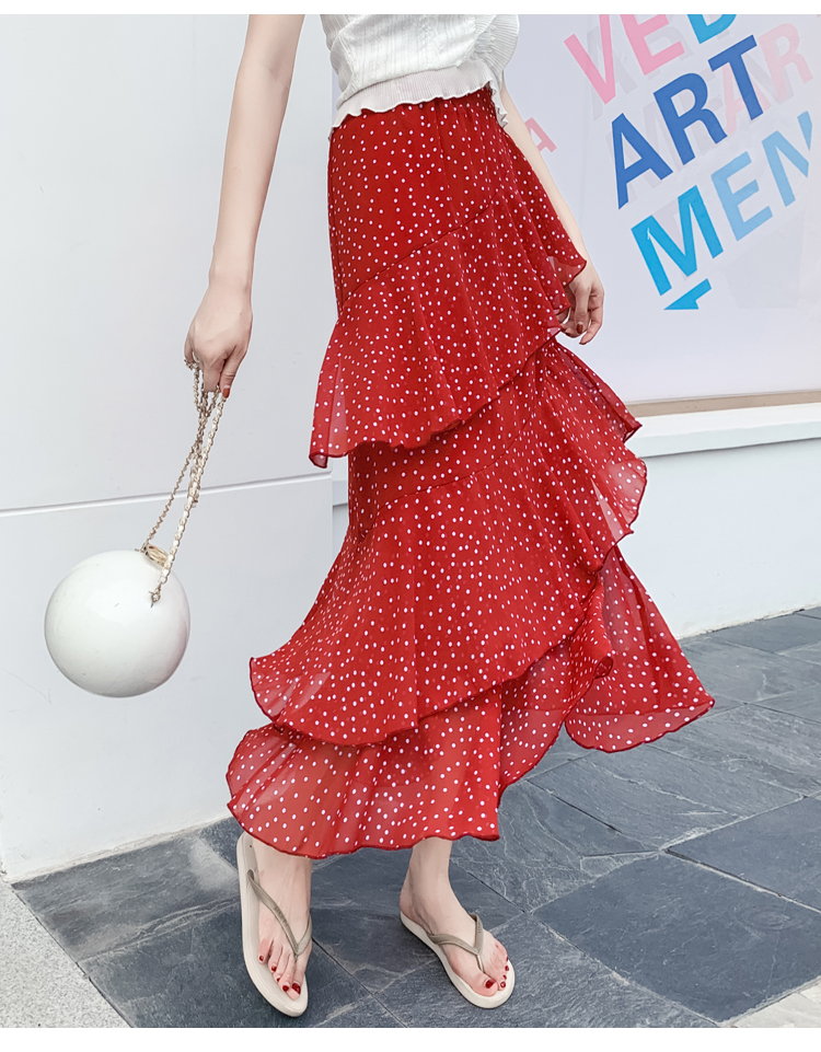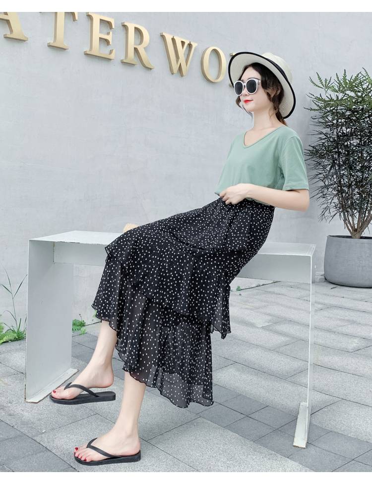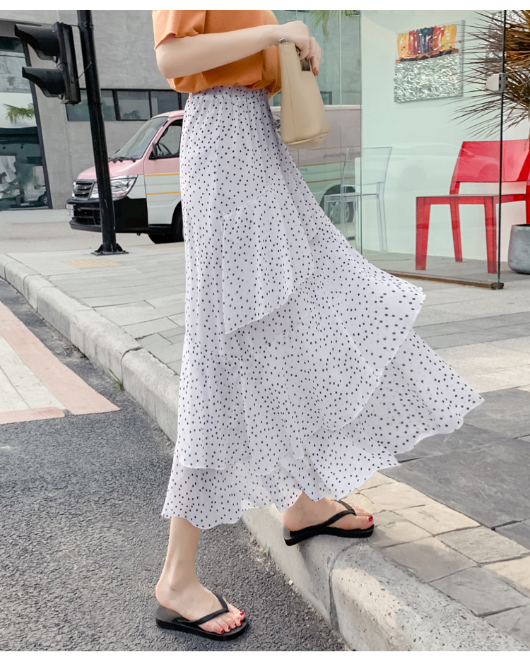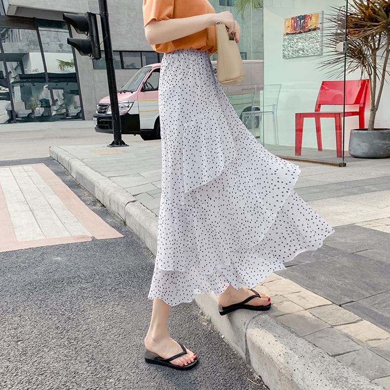 適合胯大腿粗的裙子女2019夏裝中長款高腰雪紡半身長裙波點蛋糕裙