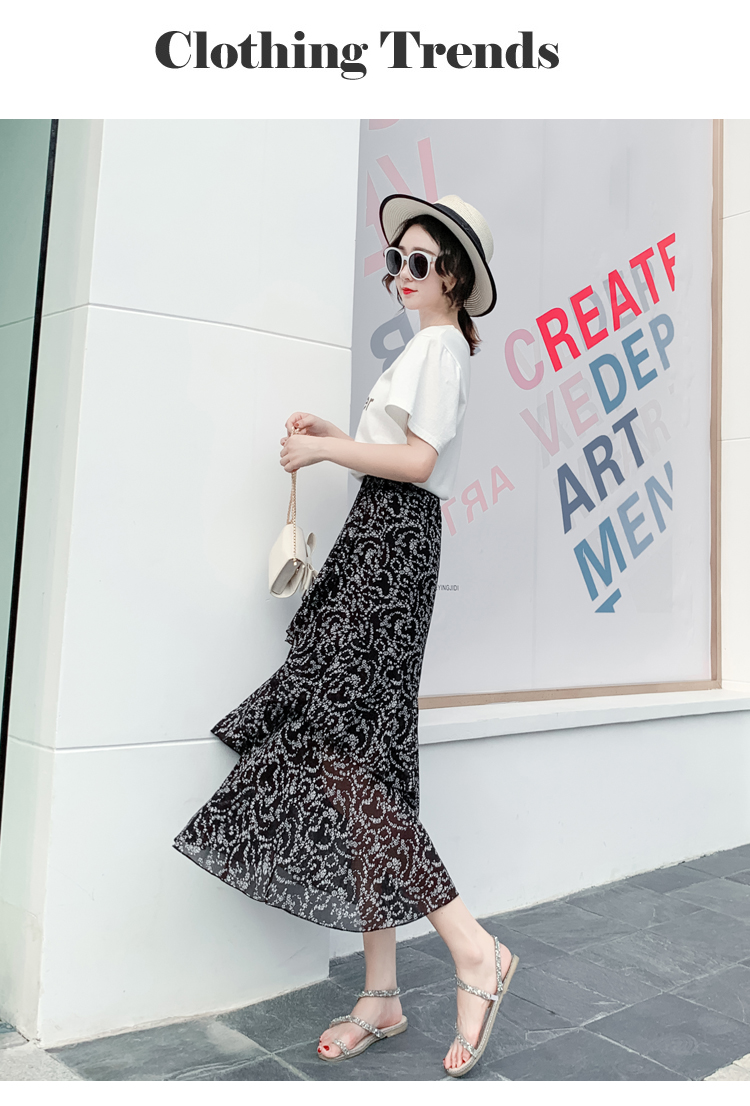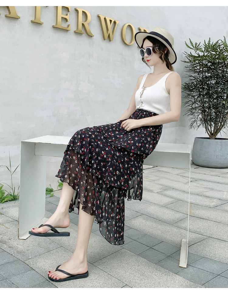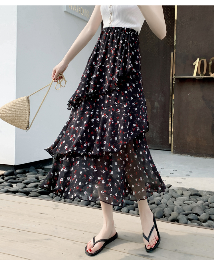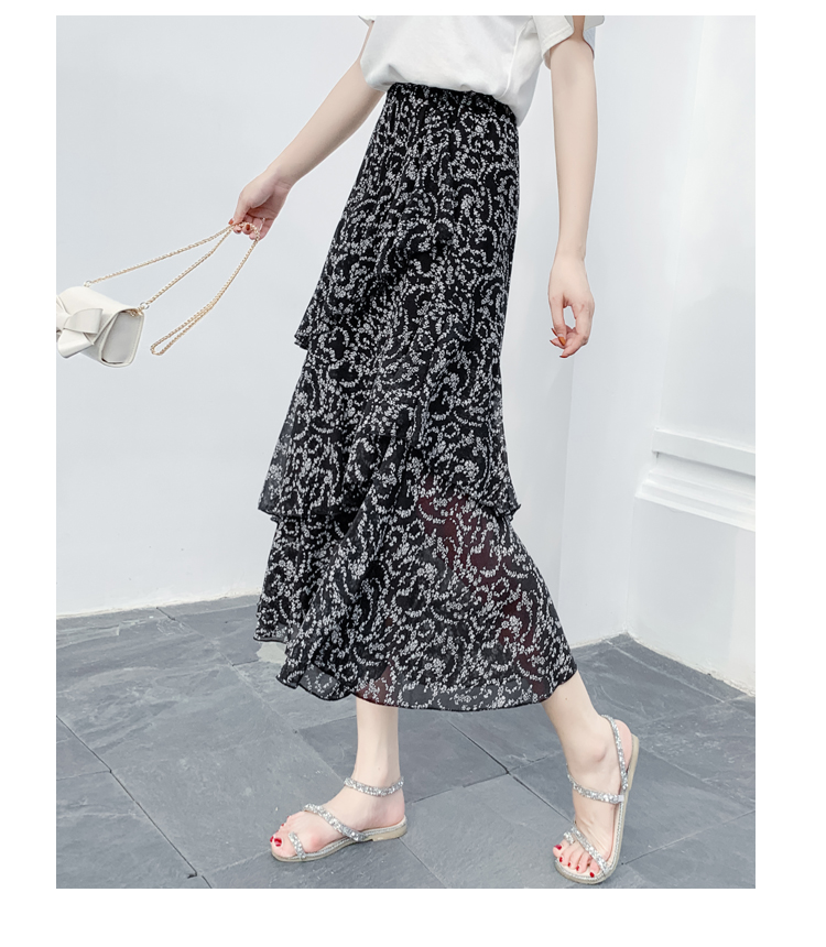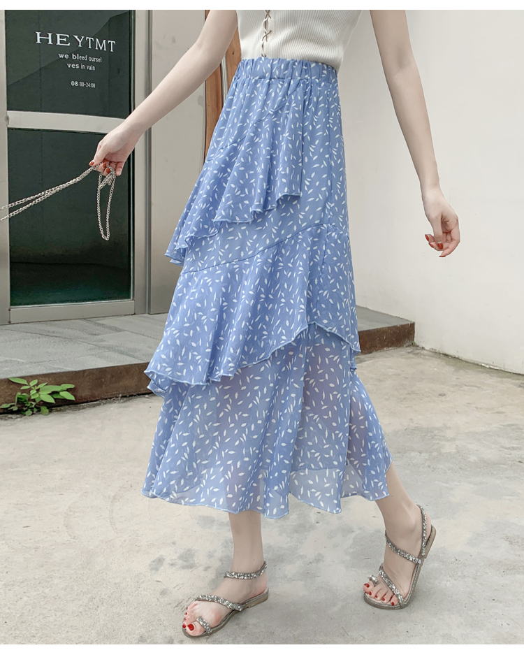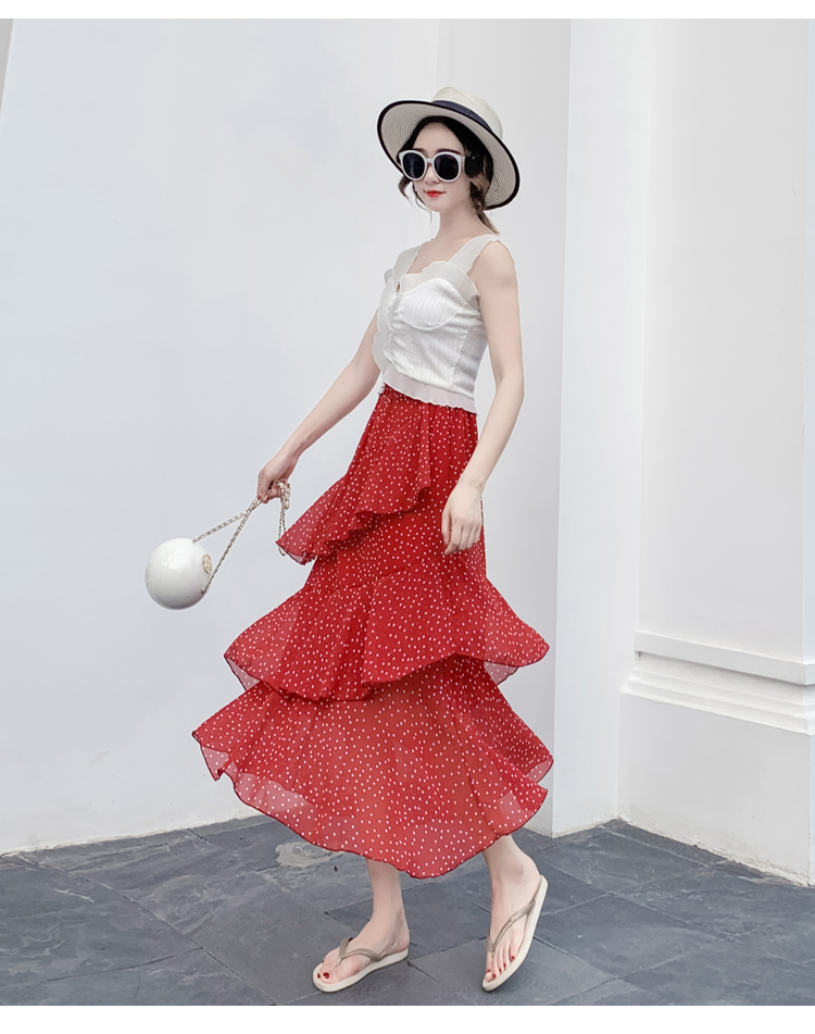 適合胯大腿粗的裙子女2019夏裝中長款高腰雪紡半身長裙波點蛋糕裙