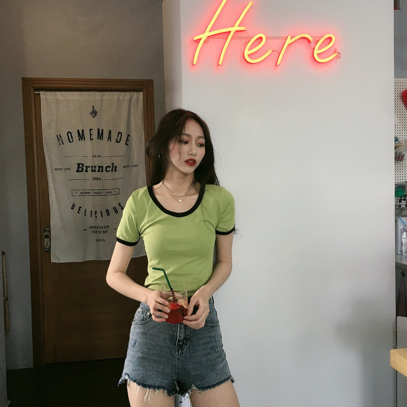 2019新款芥末綠半袖?恤女寬松牛油果綠色t恤短袖牛油果綠上衣夏