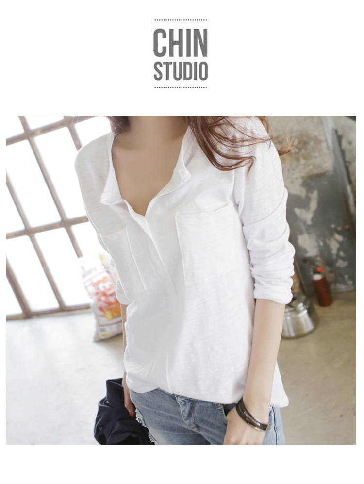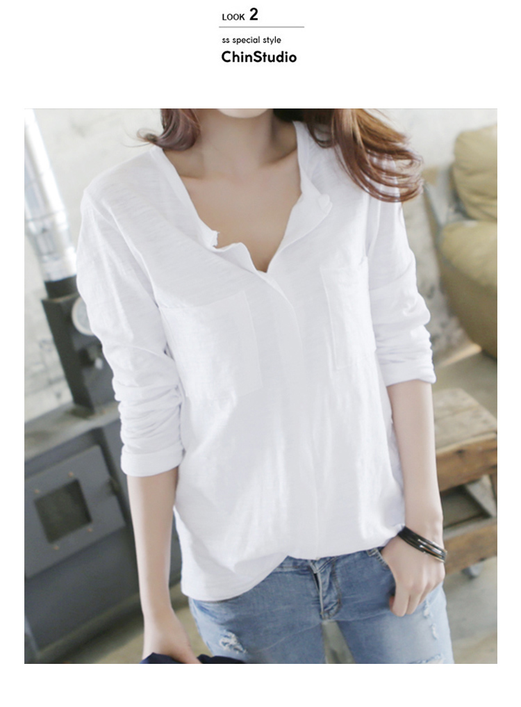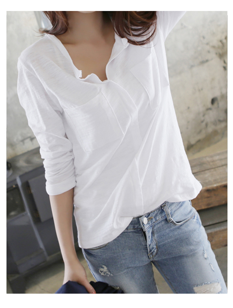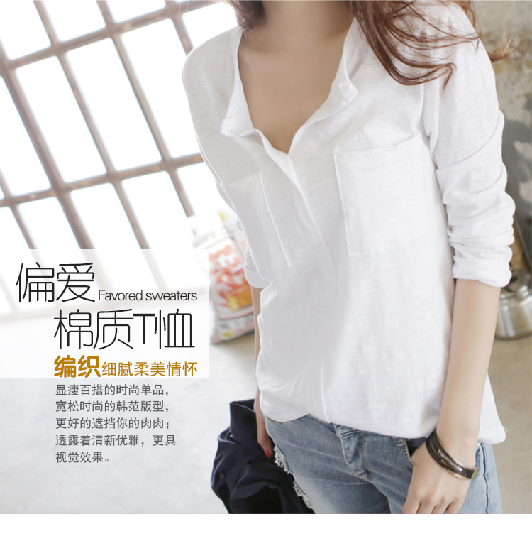 2019春裝新款韓版長袖t恤女裝v領大碼寬松體恤純棉打底衫內搭上衣
