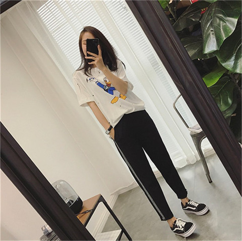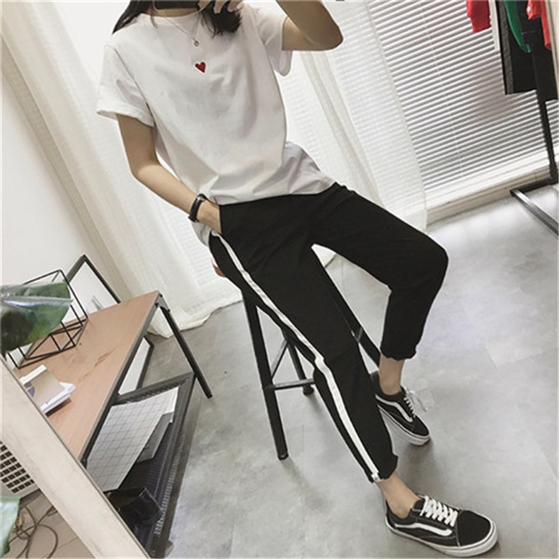 褲子女2018夏裝新款韓版寬松運動褲學生百搭哈倫褲大碼九分休閑褲