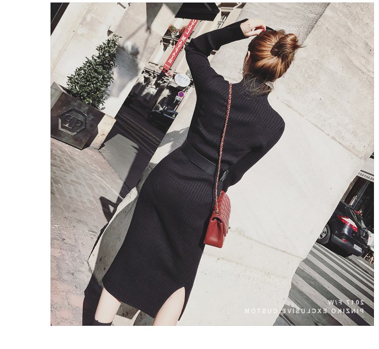 長款毛衣女2018新款韓版網紅針織連衣裙修身過膝打底毛衣裙包臂裙