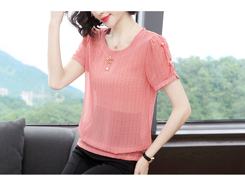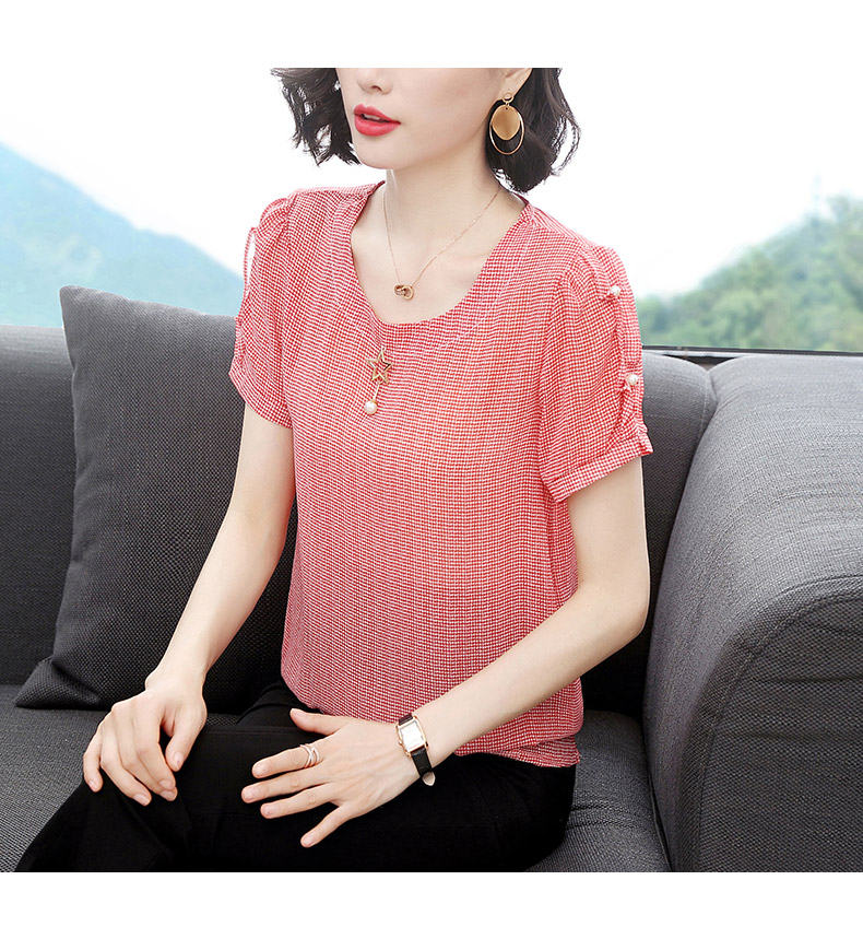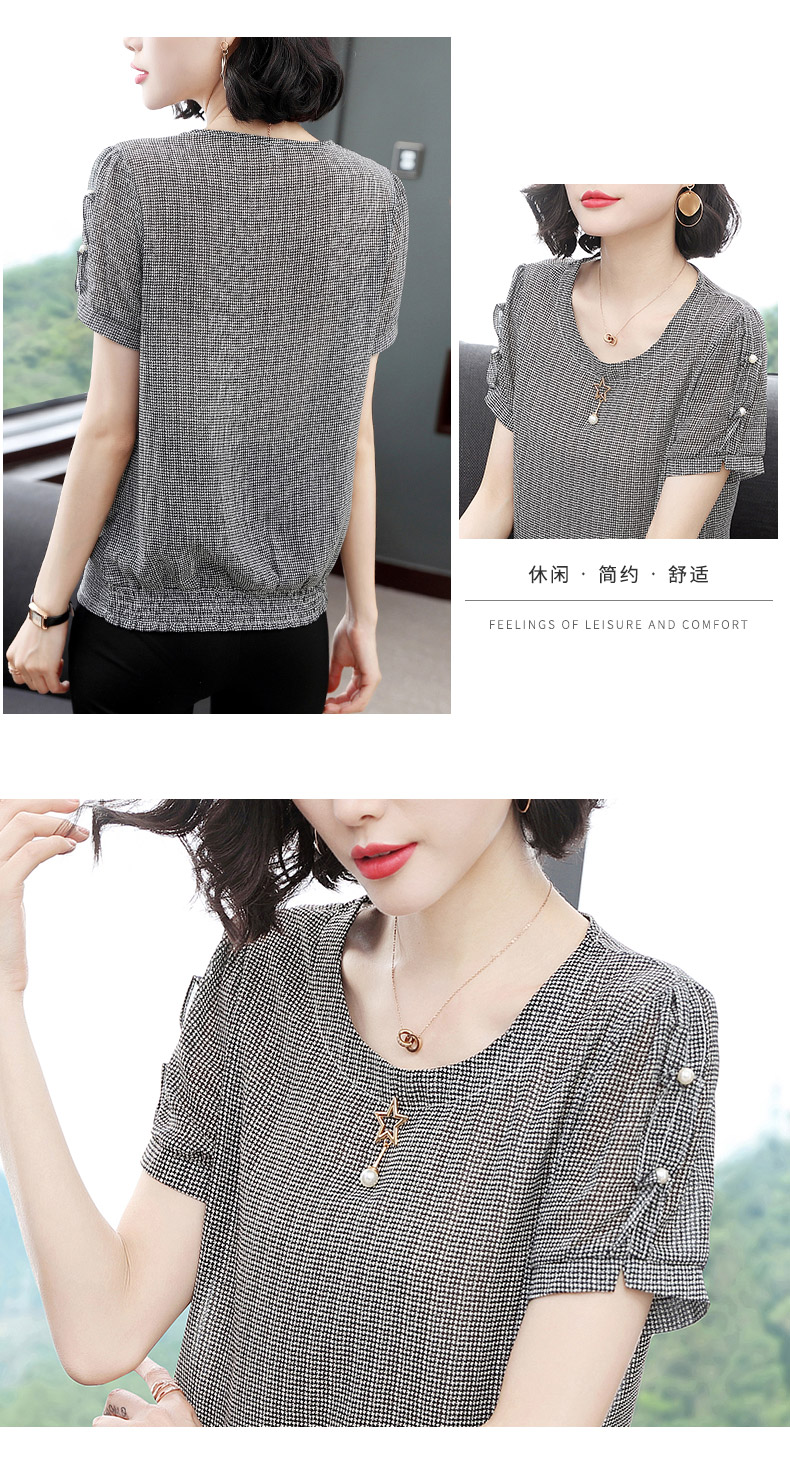 雪紡衫女短袖2019新款夏裝寬松泡泡袖t恤上衣洋氣時尚氣質襯衫潮