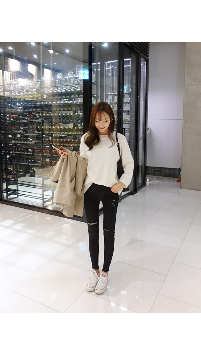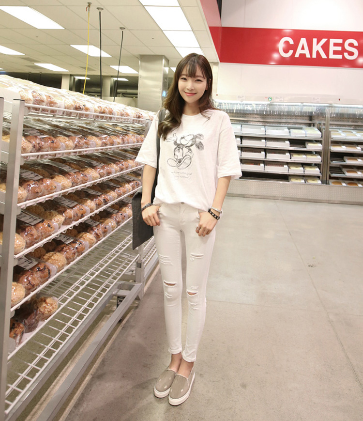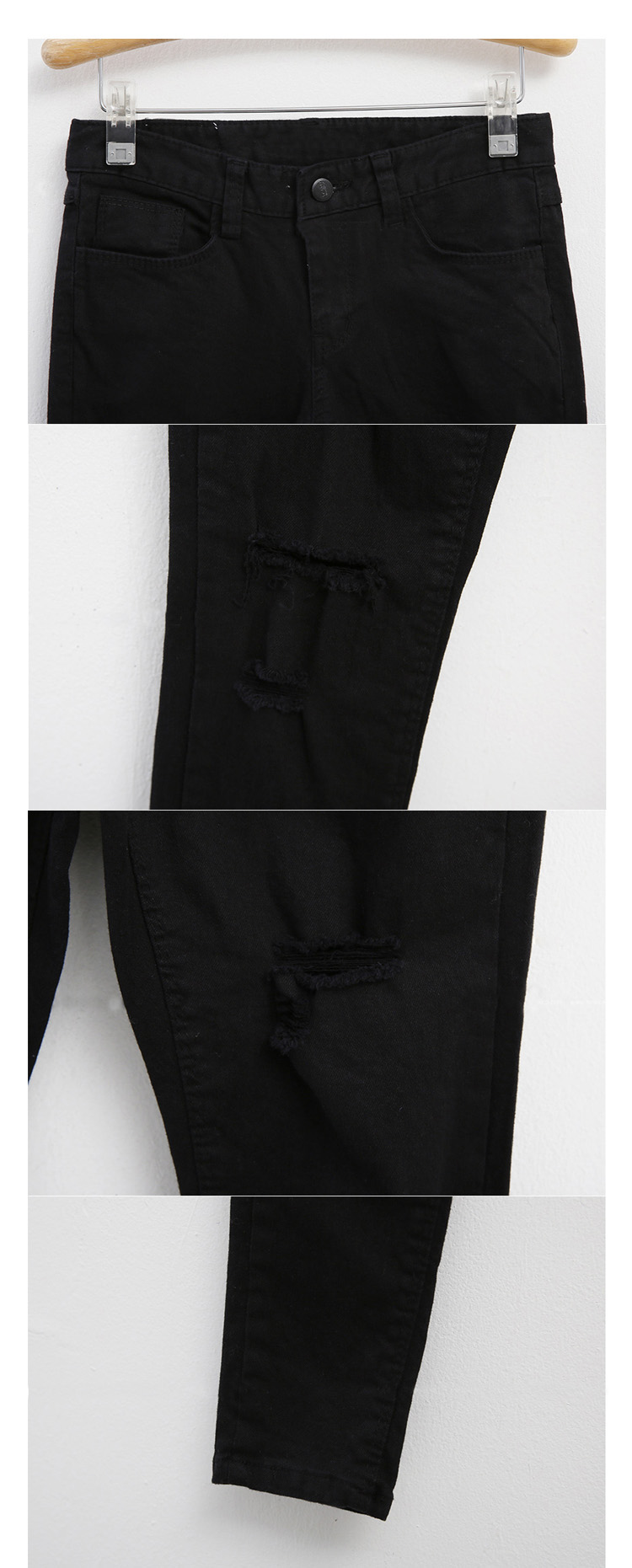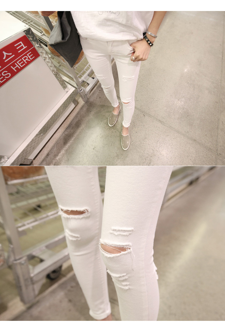 2019春裝新款黑色破洞牛仔褲女修身顯瘦高腰九分褲小腳打底鉛筆褲