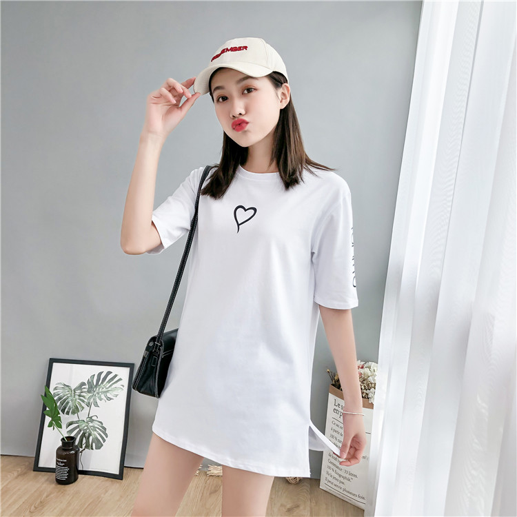 2019春裝新款韓版寬松大碼中長款白色ins短袖t恤女打底衫夏季上衣