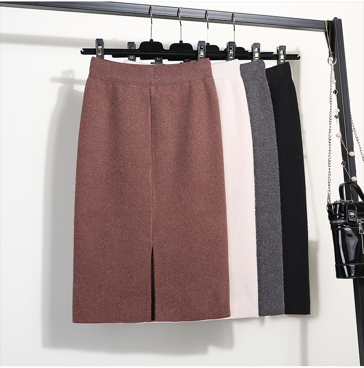 開叉針織半身裙女一步裙秋冬裝中長款包臀裙高腰長裙加厚毛線裙子