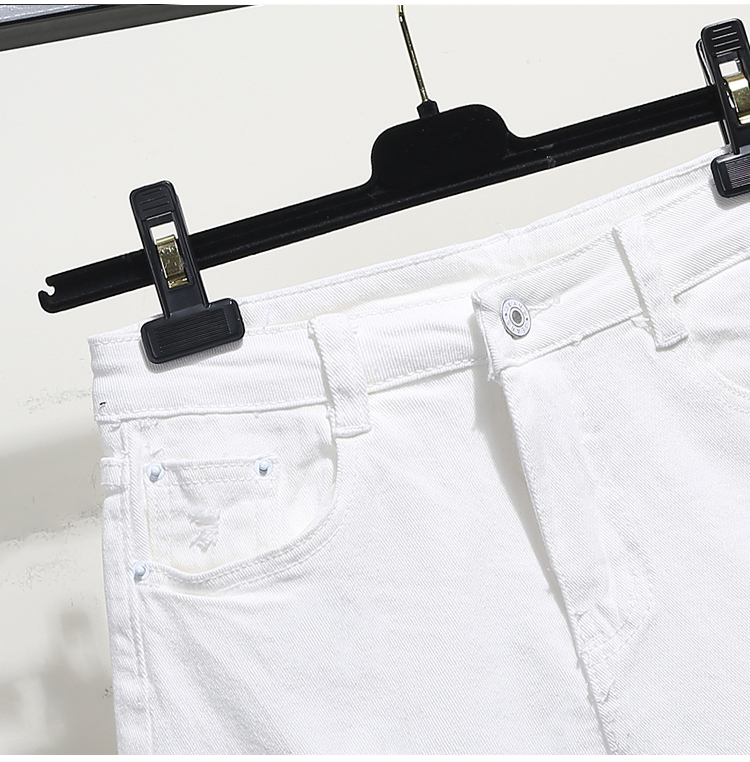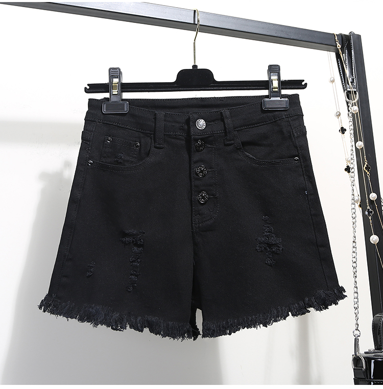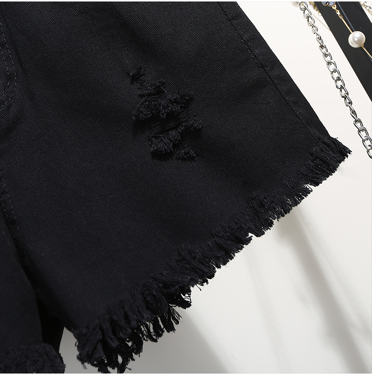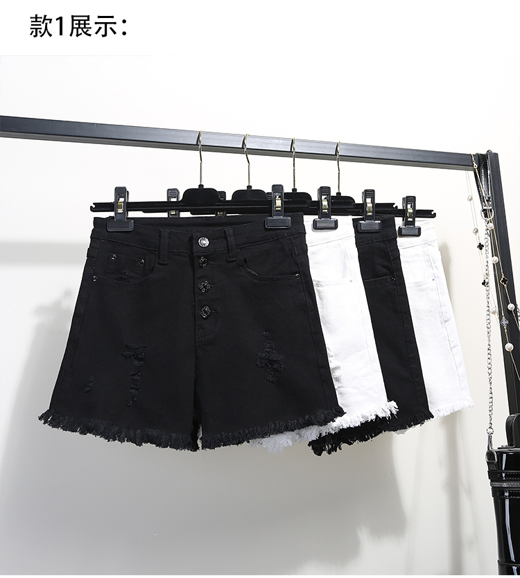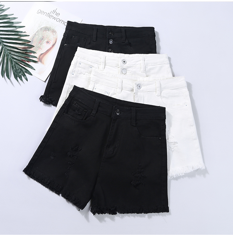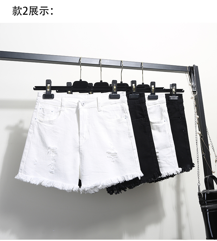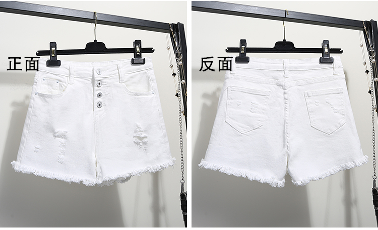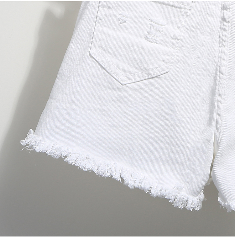 2019春裝新款高腰寬松學生白色牛仔短褲女夏破洞毛邊闊腿褲熱褲子