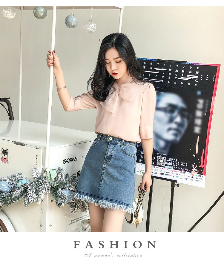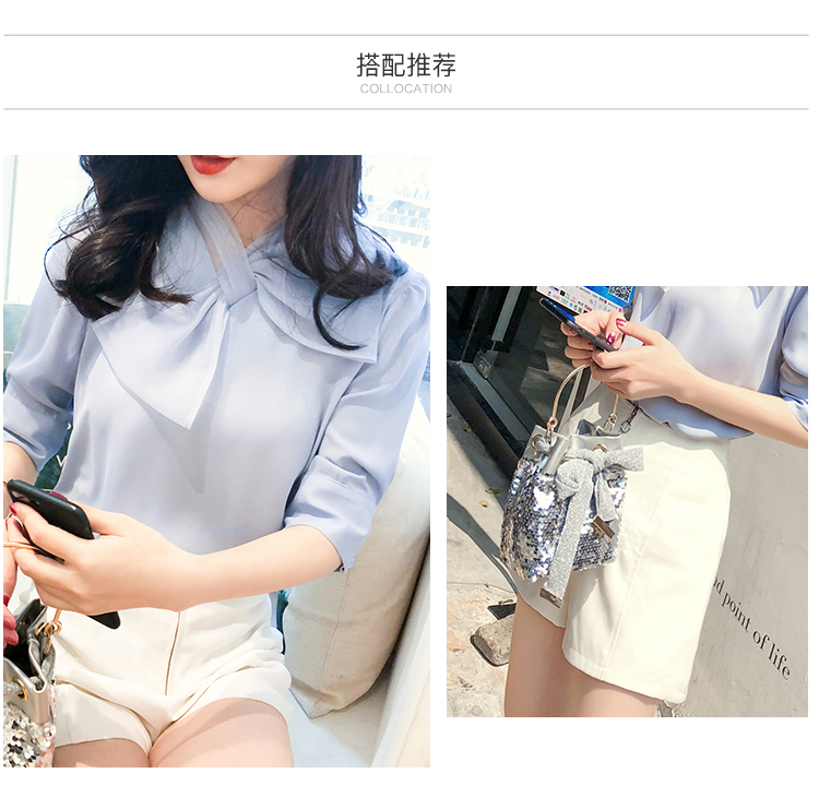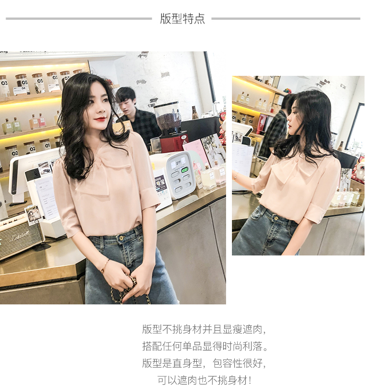 2019夏裝新款優雅蝴蝶結襯衫上衣女短袖衣職業裝飄帶雪紡襯衣中袖