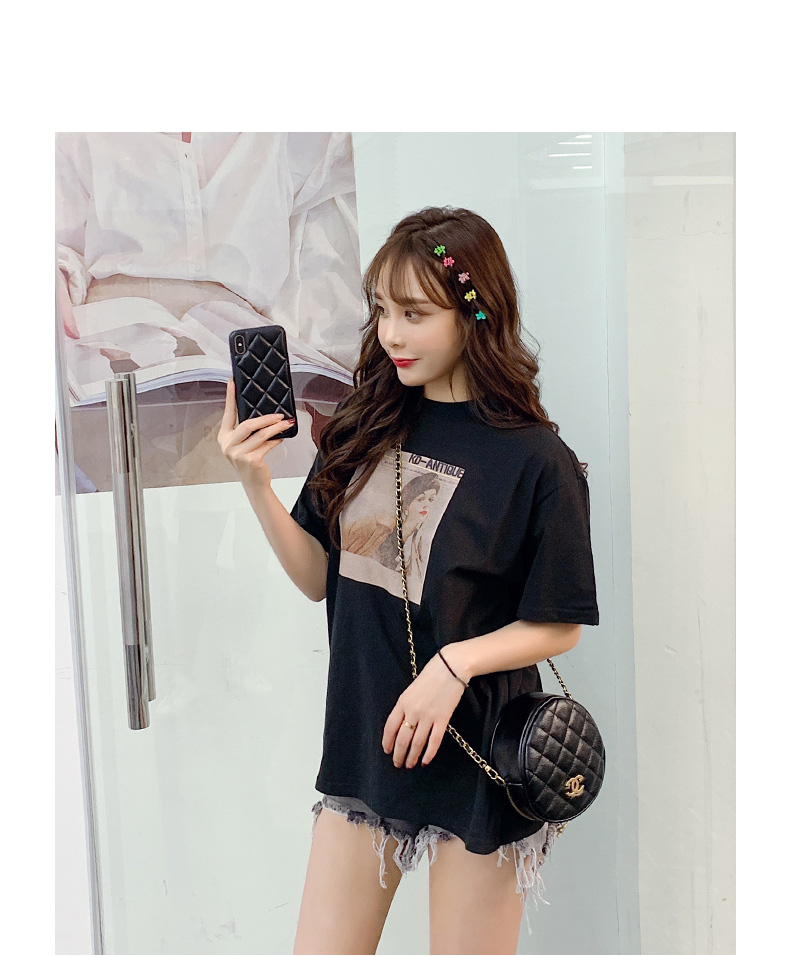 韓國東大門中學生半袖少女人頭印花T恤圓領寬松短袖女ins潮上衣